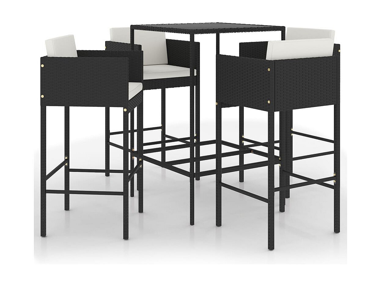 Danick 5-delige Tuinbarset met kussens poly rattan zwart
