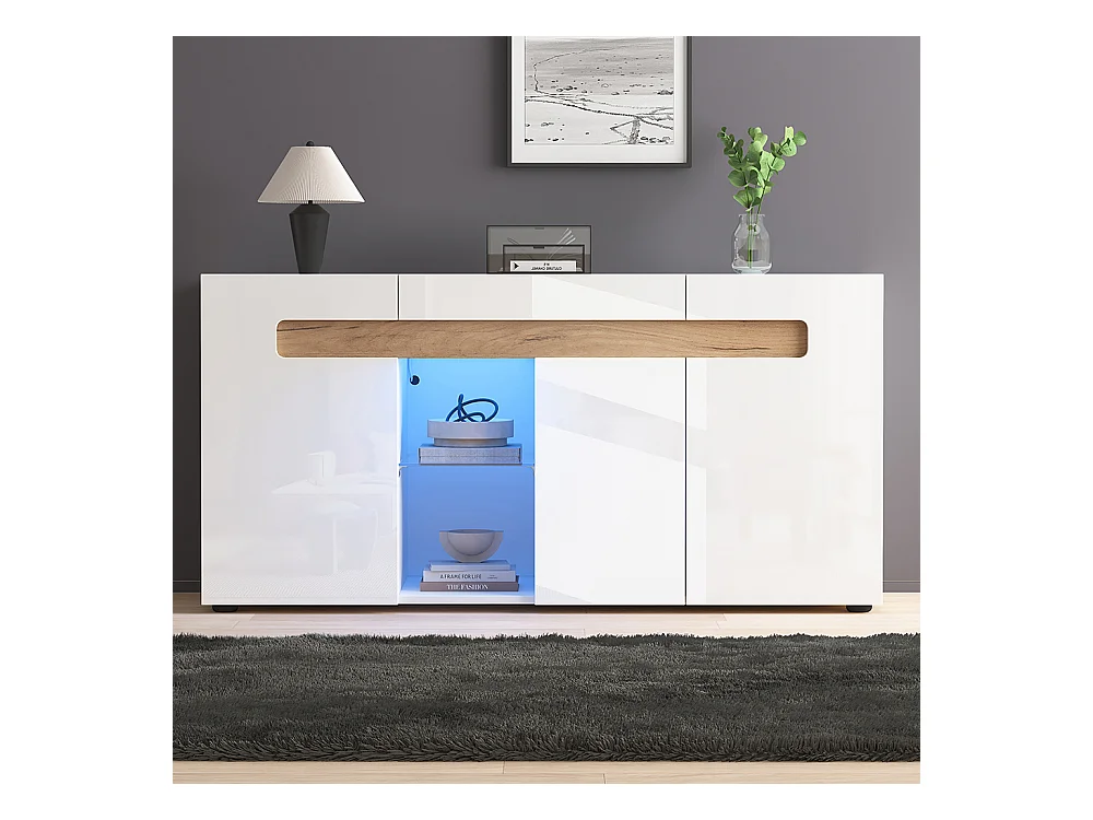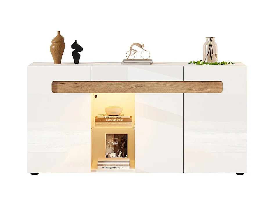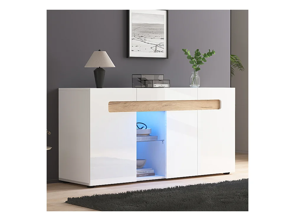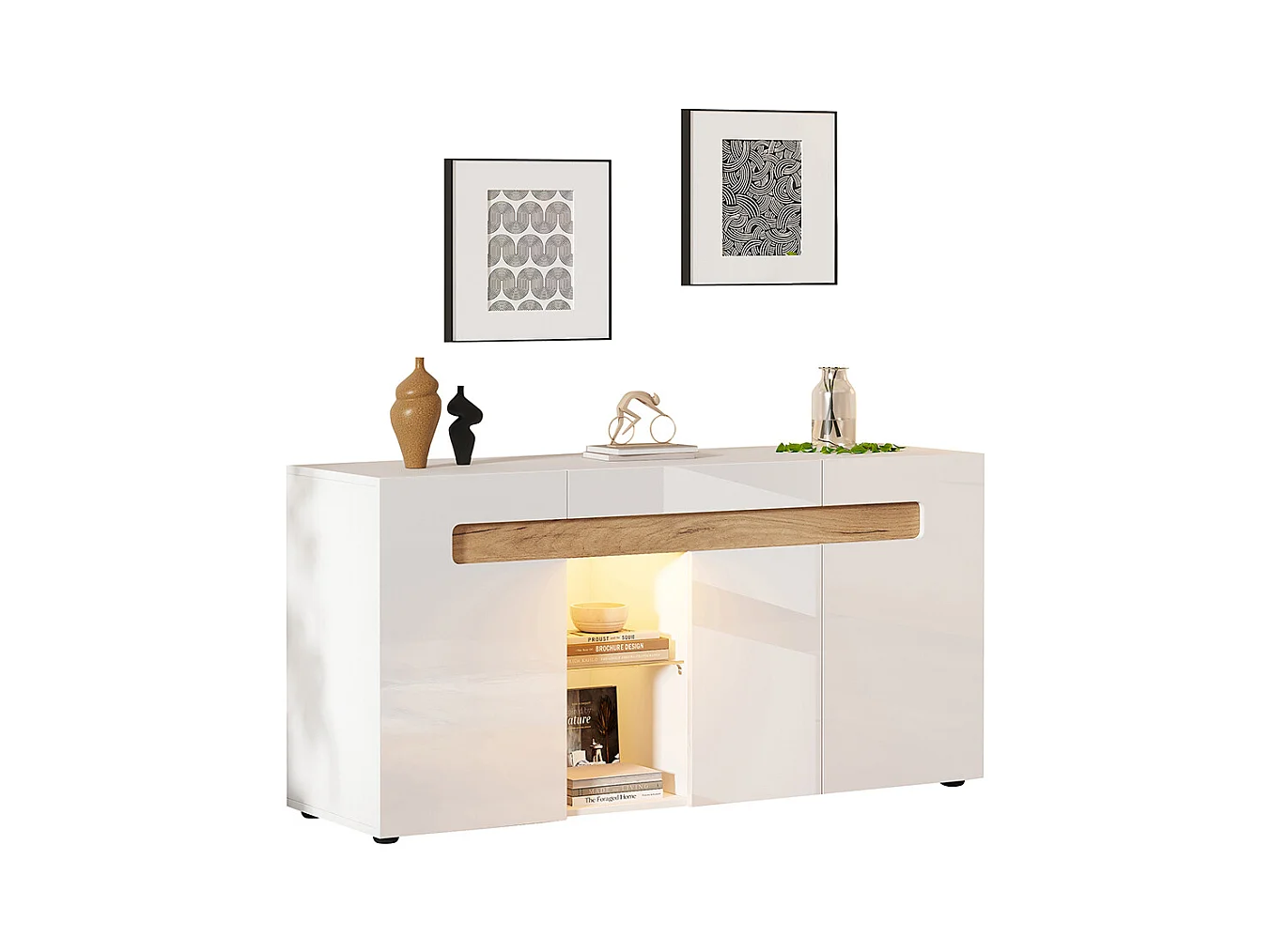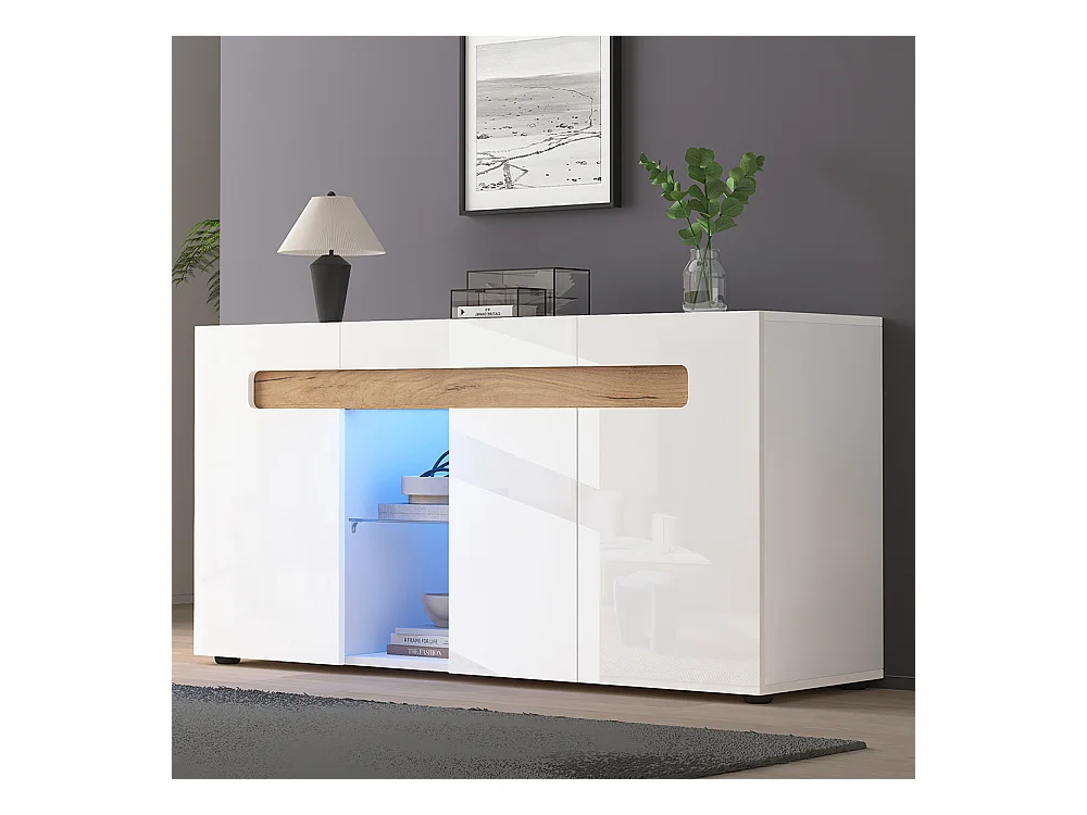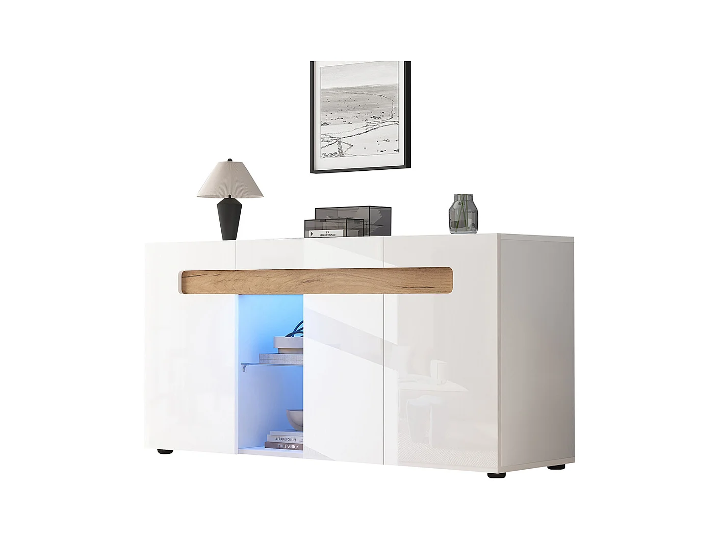 Sideboard 140x40x70 cm modern wit LED-applicatie glazen plank woonkamer