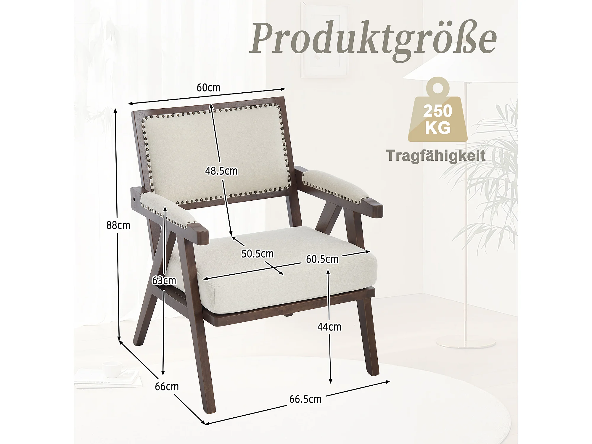 Sienna – Set van 2 fauteuils in katoen-linnen en massief hout – vintage stijl met ergonomische rugleuning – comfortabel voor woonkamer, slaapkamer of kantoor