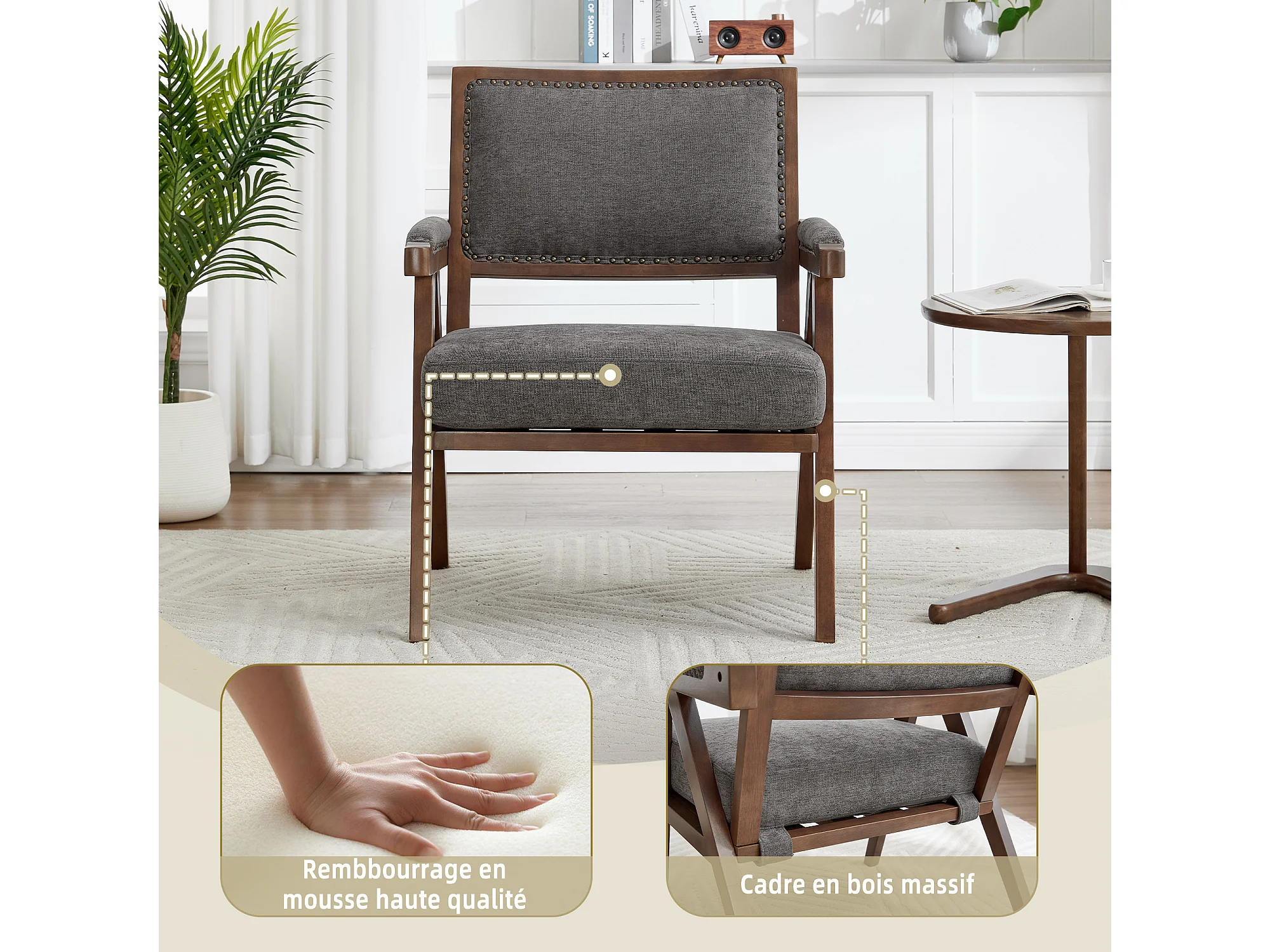 Sienna – Set van 2 fauteuils in katoen-linnen en massief hout – vintage stijl met ergonomische rugleuning – comfortabel voor woonkamer, slaapkamer of kantoor