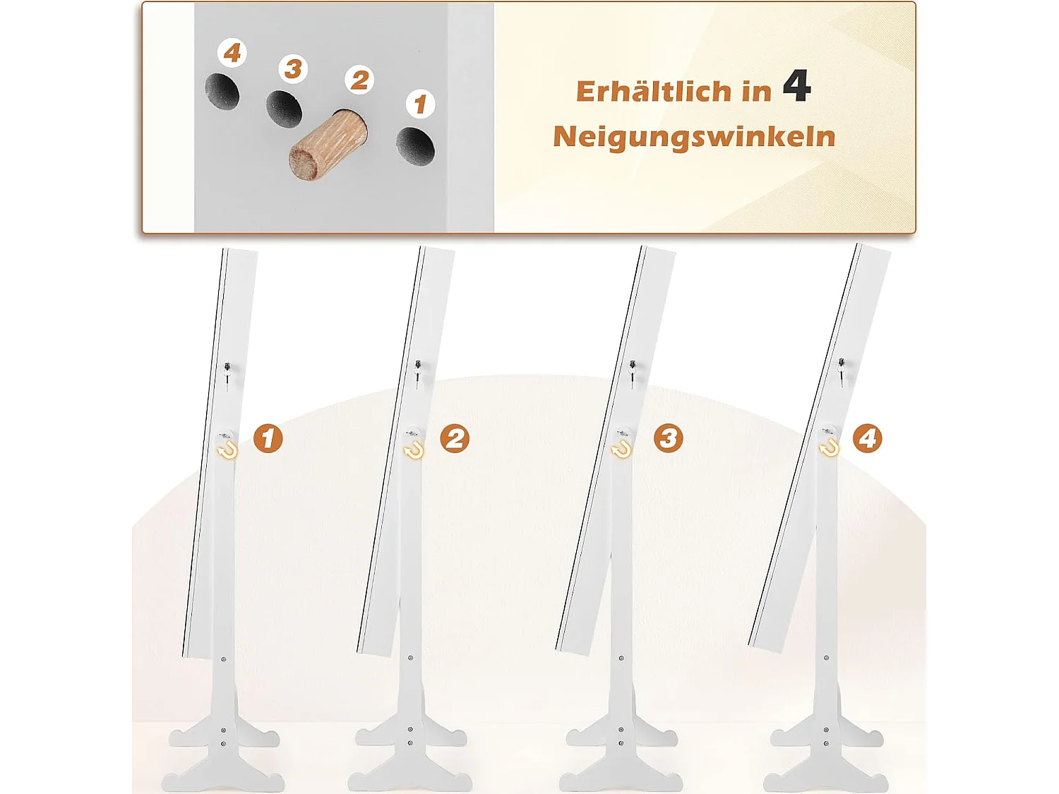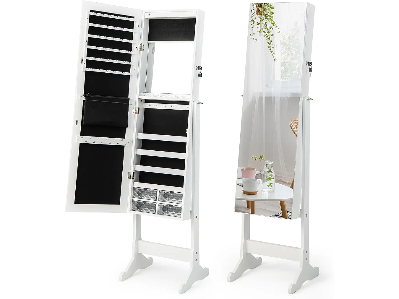 Sieradenkast kantelbaar, vrijstaand sieradenrek met full-body spiegel & interne make-upspiegel & ledverlichting, sieradenspiegelkast afsluitbaar, witVH32826