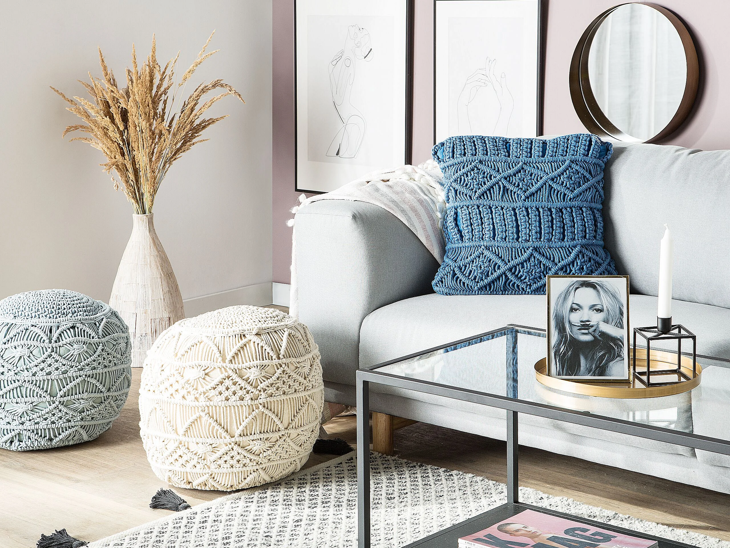 Sierkussen macramé blauw 45 x 45 cm KARATAS