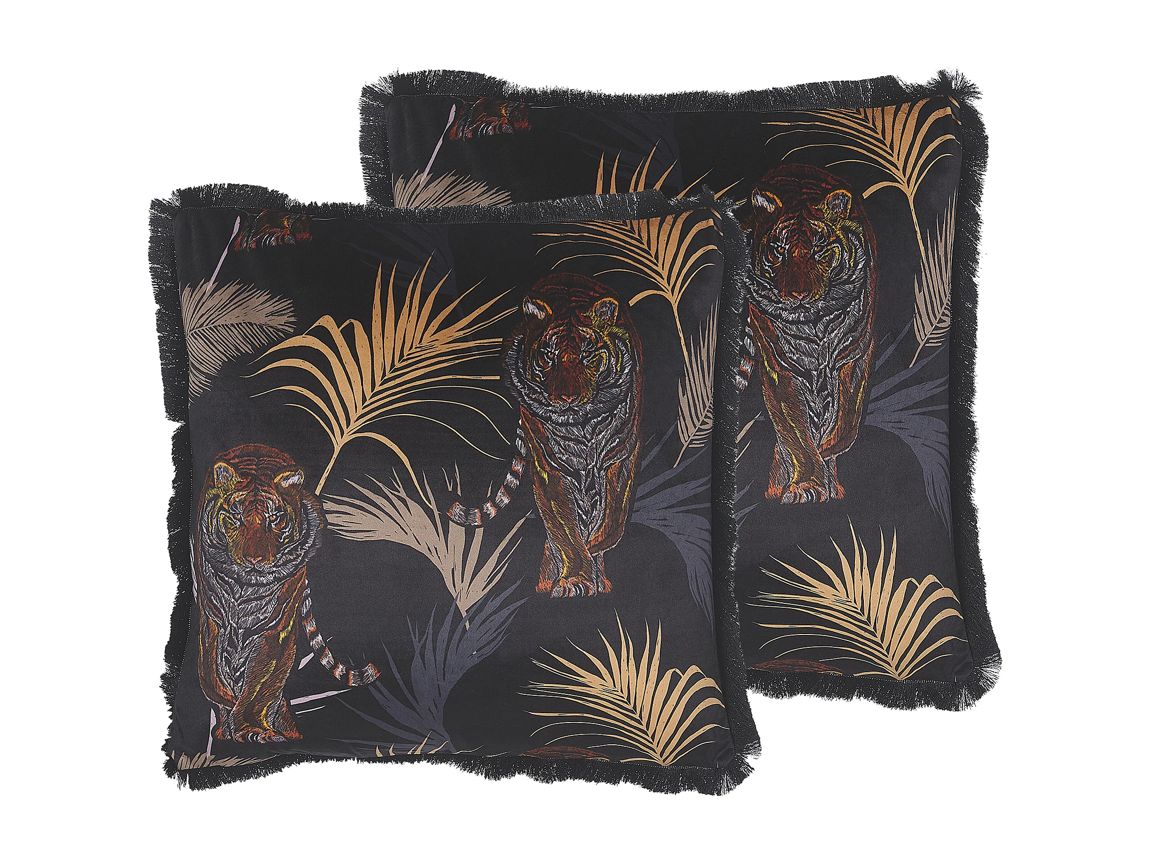 Set van 2 decoratieve kussens TALINUM Fluweel 45 x 45 cm Zwart Dierenprint