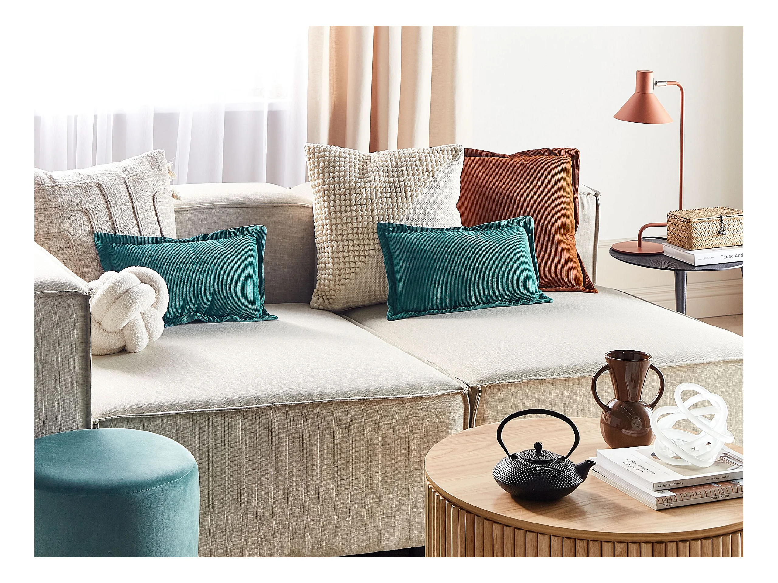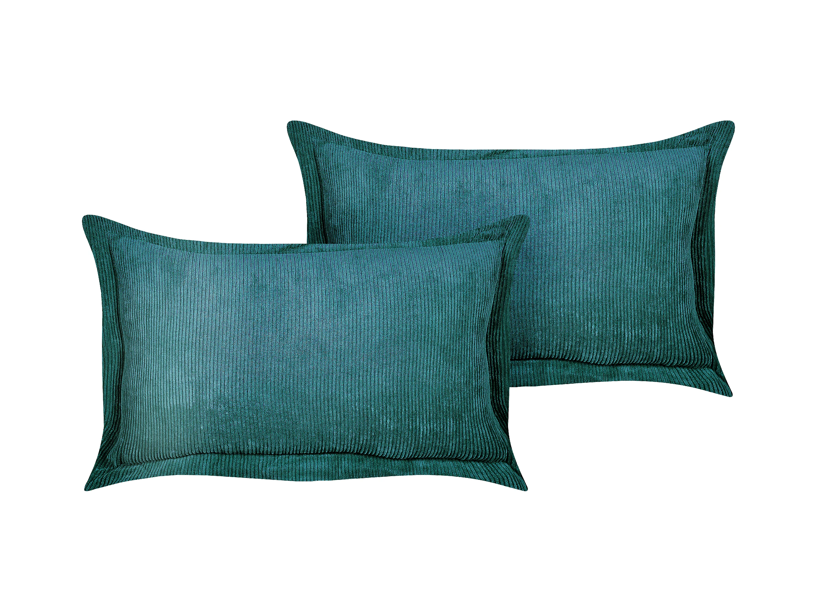 Set van 2 decoratieve kussens ZINNIA Corduroy 47 x 27 cm Blauwgroen Effen