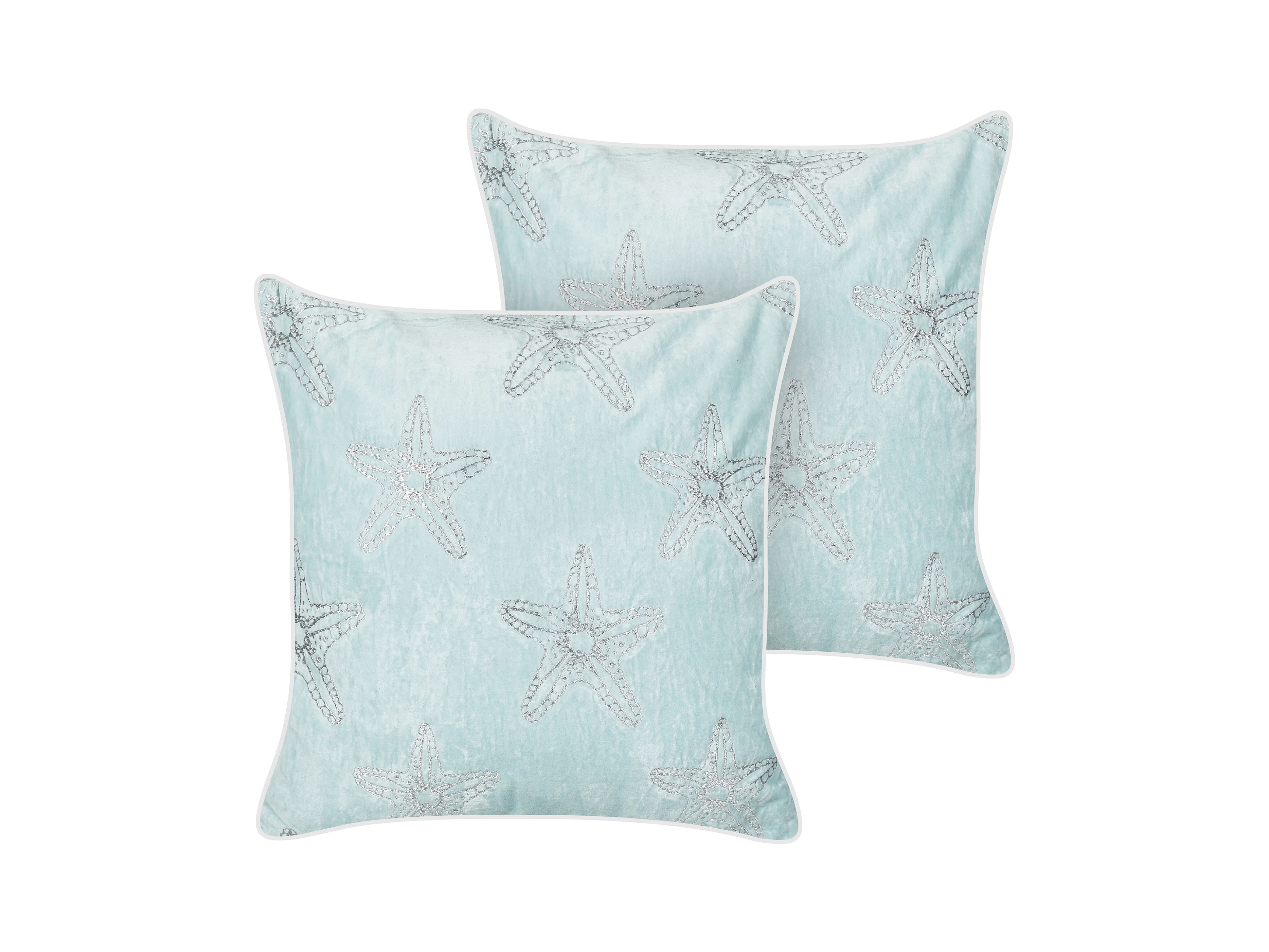 Set van 2 decoratieve kussens LAMINARIA Fluweel 45 x 45 cm Lichtblauw Dierenprint