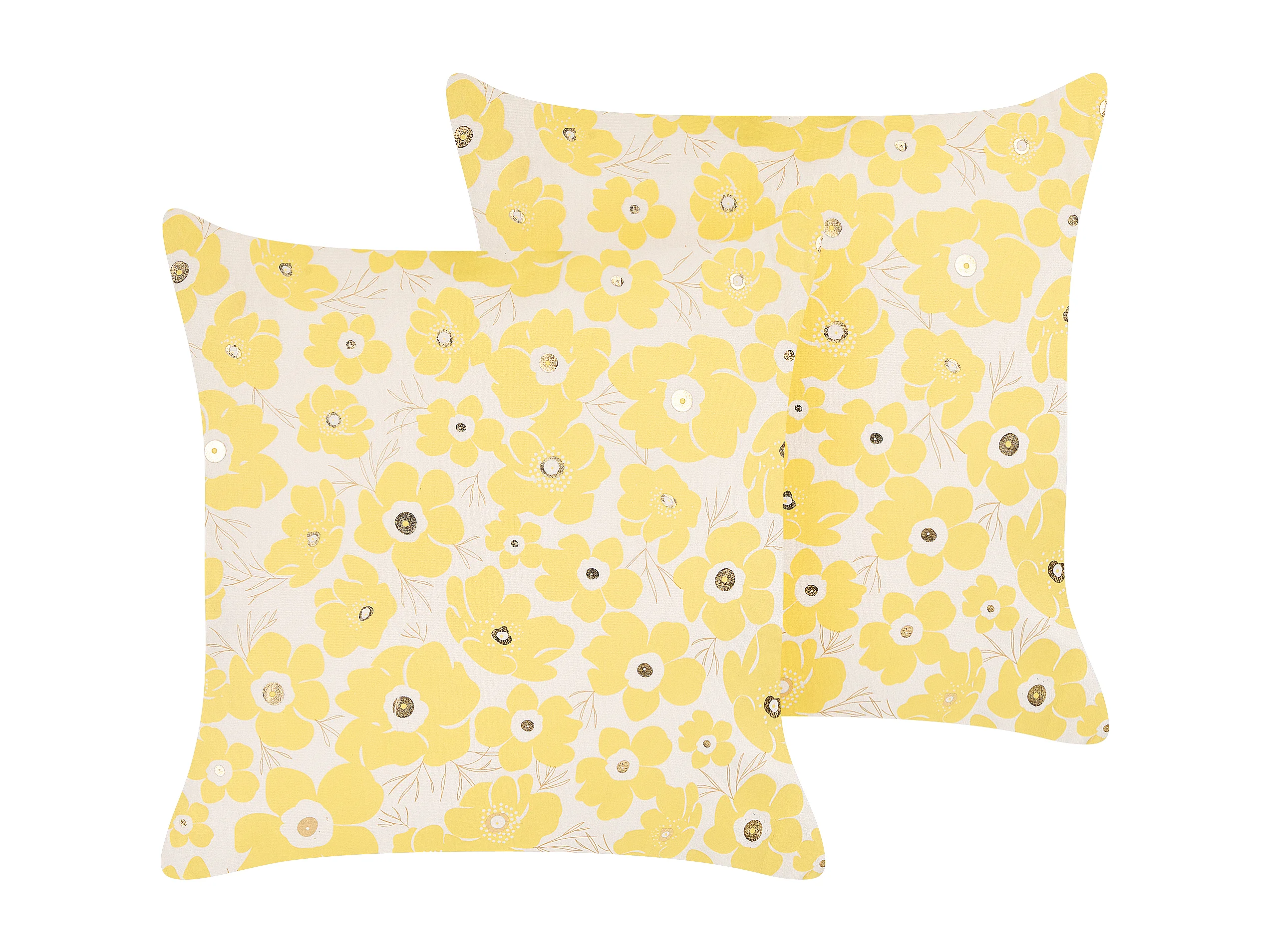 Set van 2 decoratieve kussens SCIRPUS Katoen 45 x 45 cm Geel Bloempatroon
