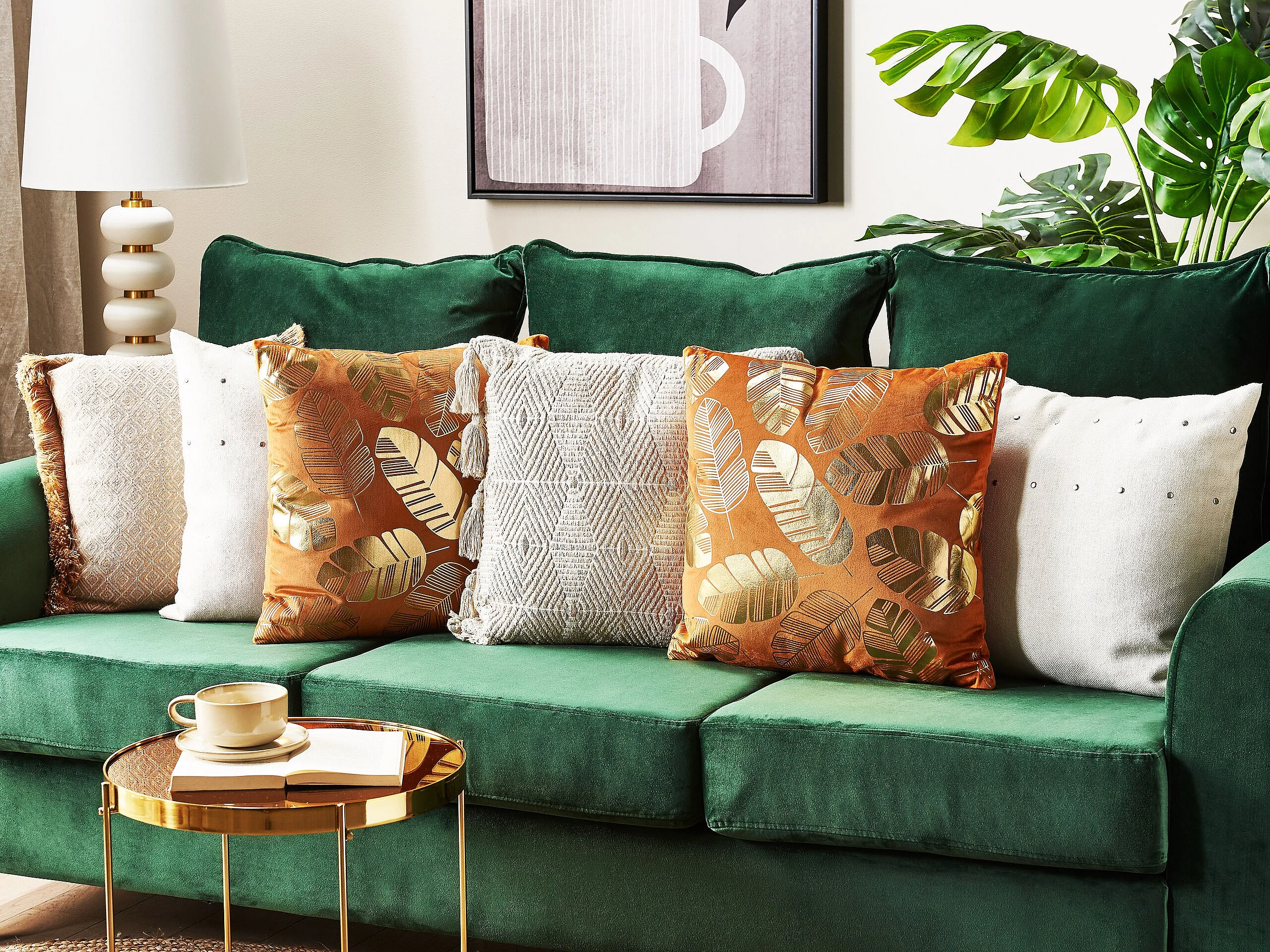 Set van 2 decoratieve kussens SUNFLOWER Fluweel 45 x 45 cm Oranje Bladpatroon