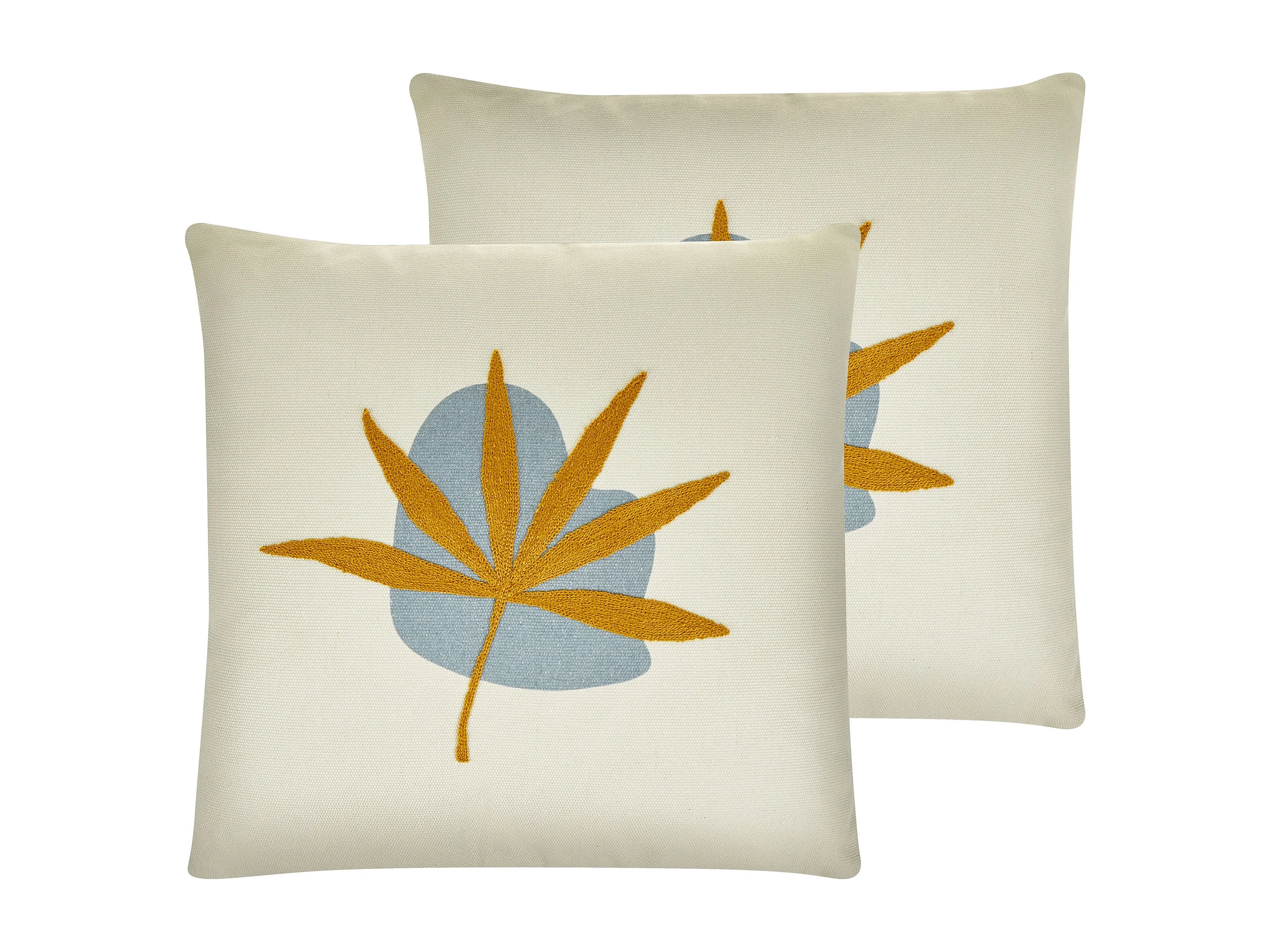 Set van 2 decoratieve kussens DAVALLIA 45 x 45 cm Beige Bladpatroon