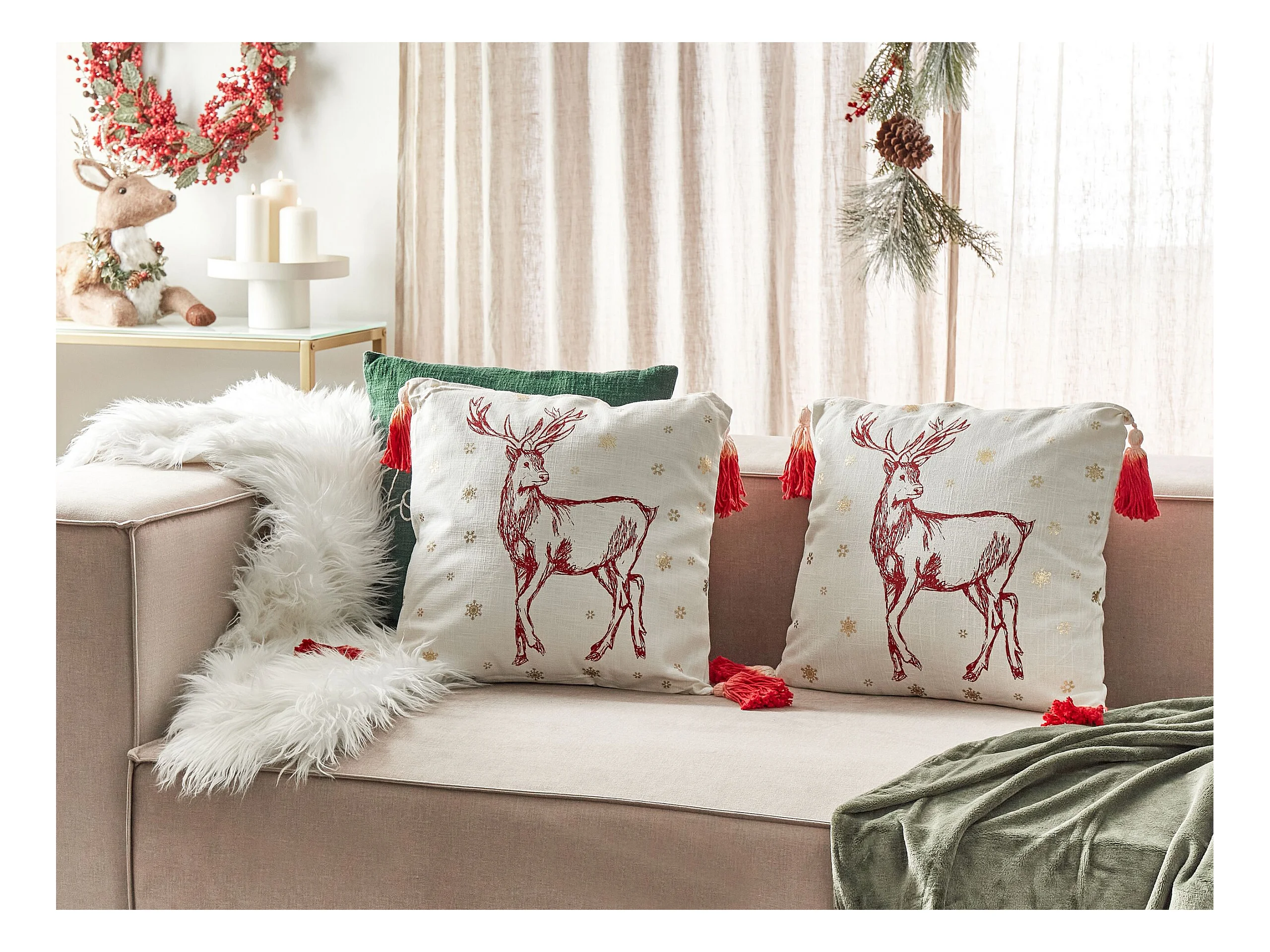 Set van 2 decoratieve kussens STAPELIA Katoen 45 x 45 cm Wit Kerst patroon