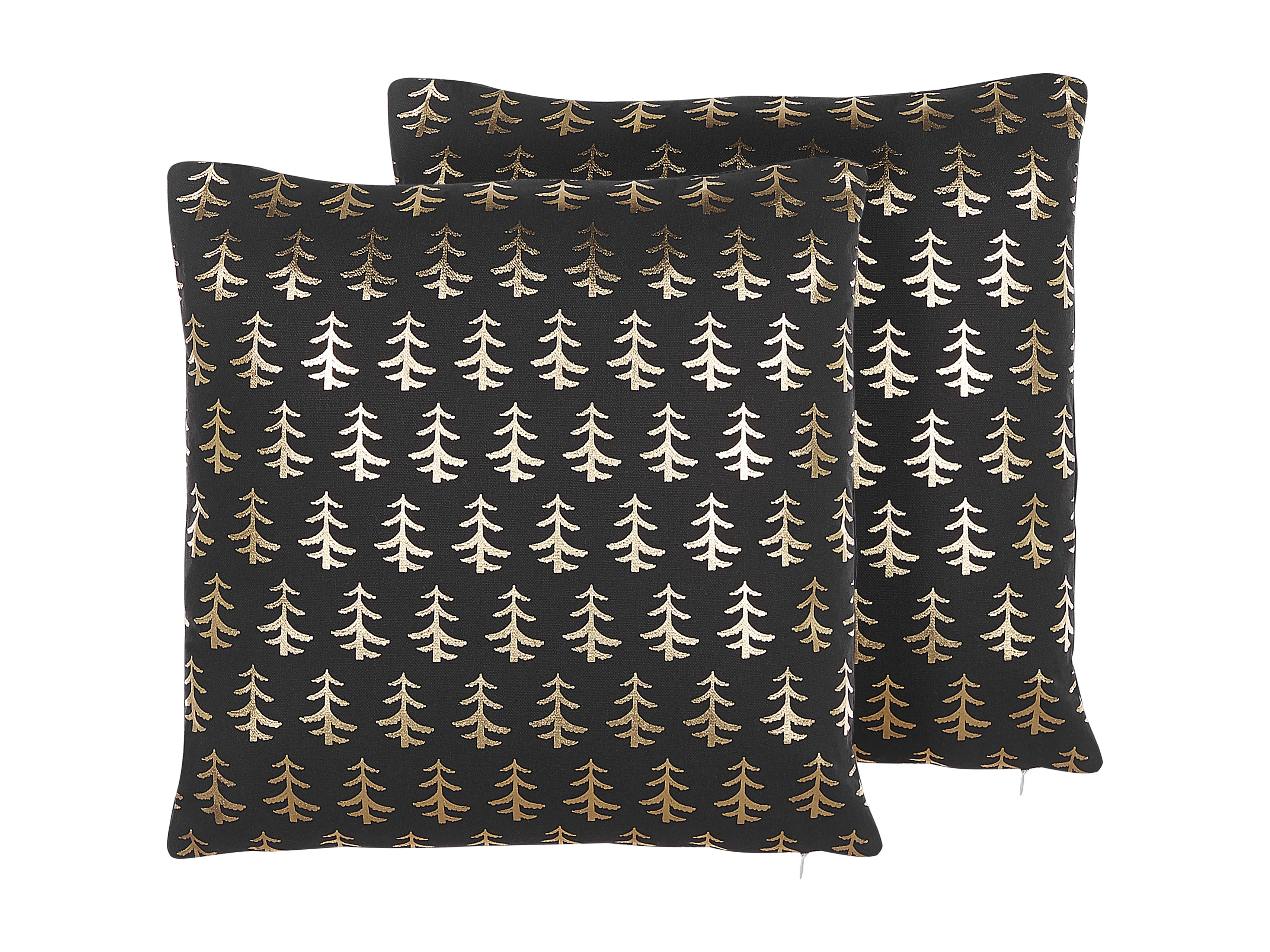 Set van 2 decoratieve kussens LEROY Katoen 45 x 45 cm Zwart Kerst patroon