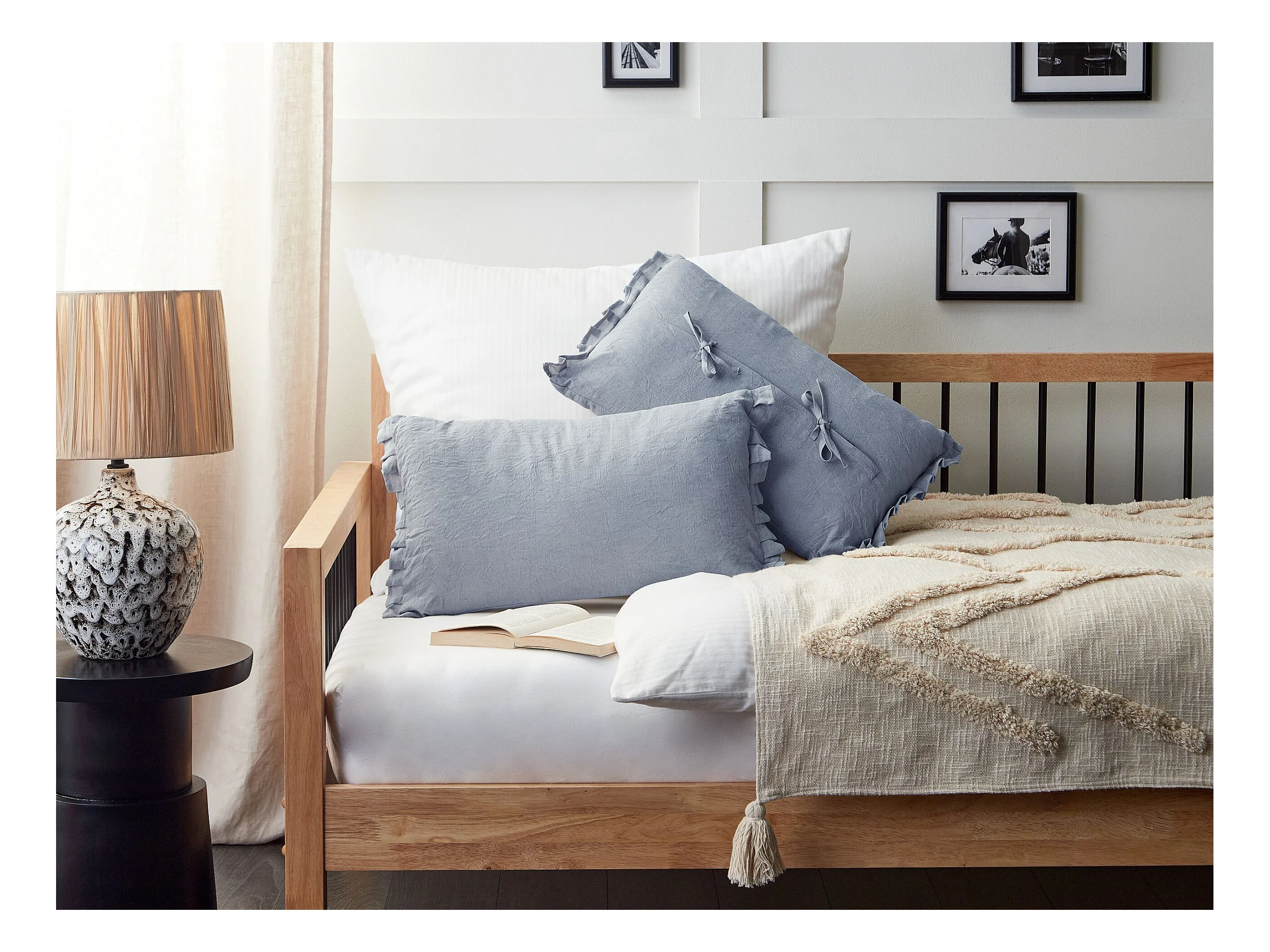 Set van 2 decoratieve kussens SASSAFRAS Linnen 30 x 45 cm Lichtblauw Effen