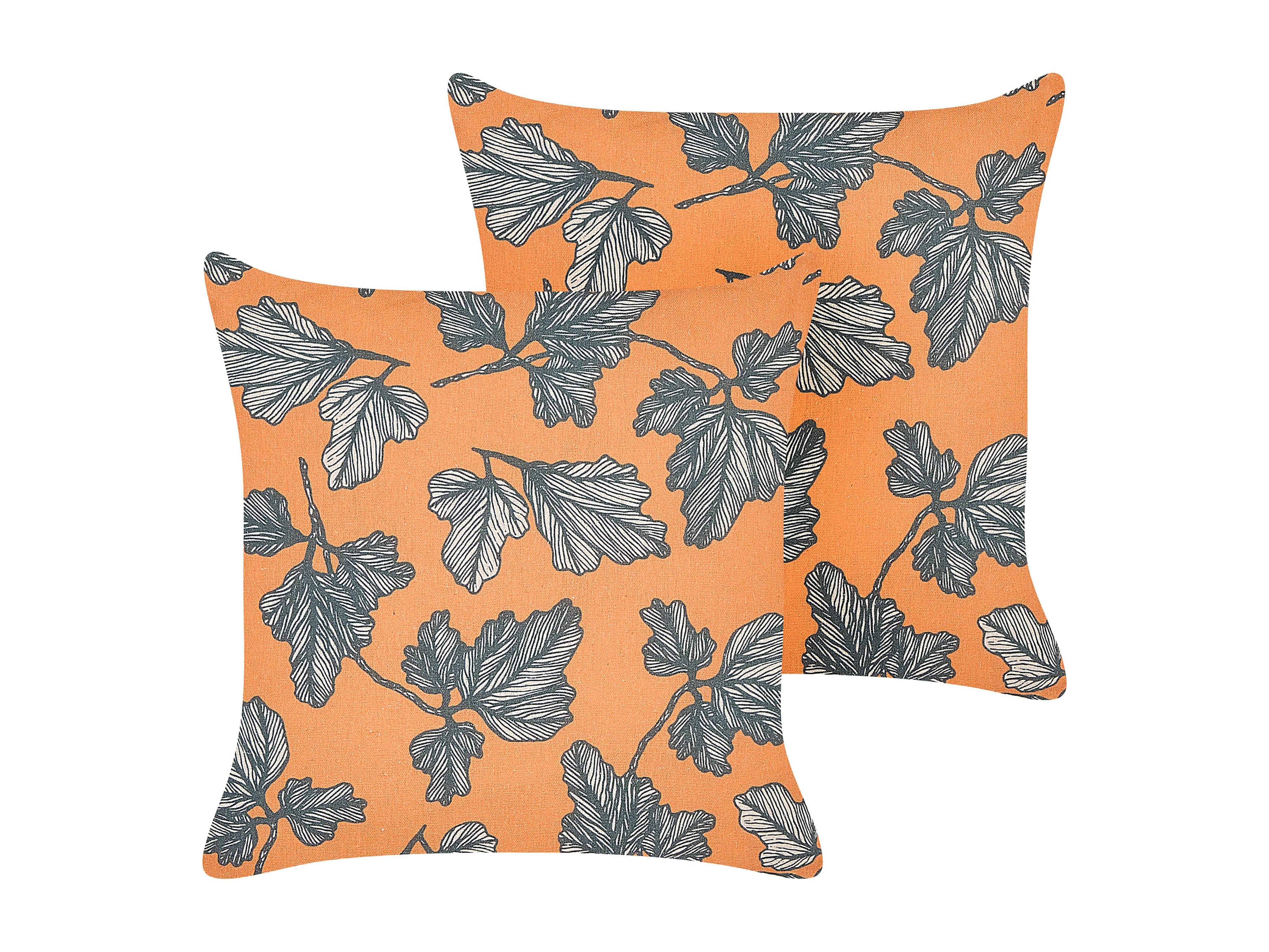 Set van 2 decoratieve kussens SPIREA 45 x 45 cm Oranje Zwart Bladpatroon