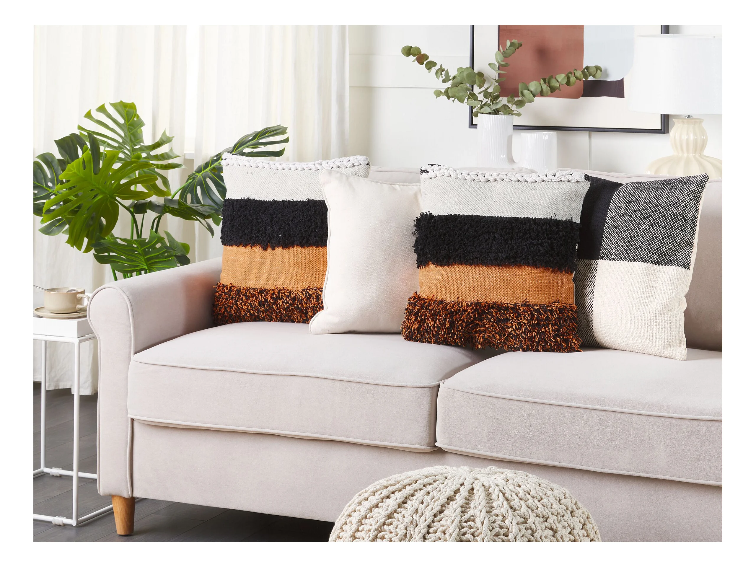 Sierkussen AGAVE Katoen 40 x 60 cm Lichtbeige Gestreept