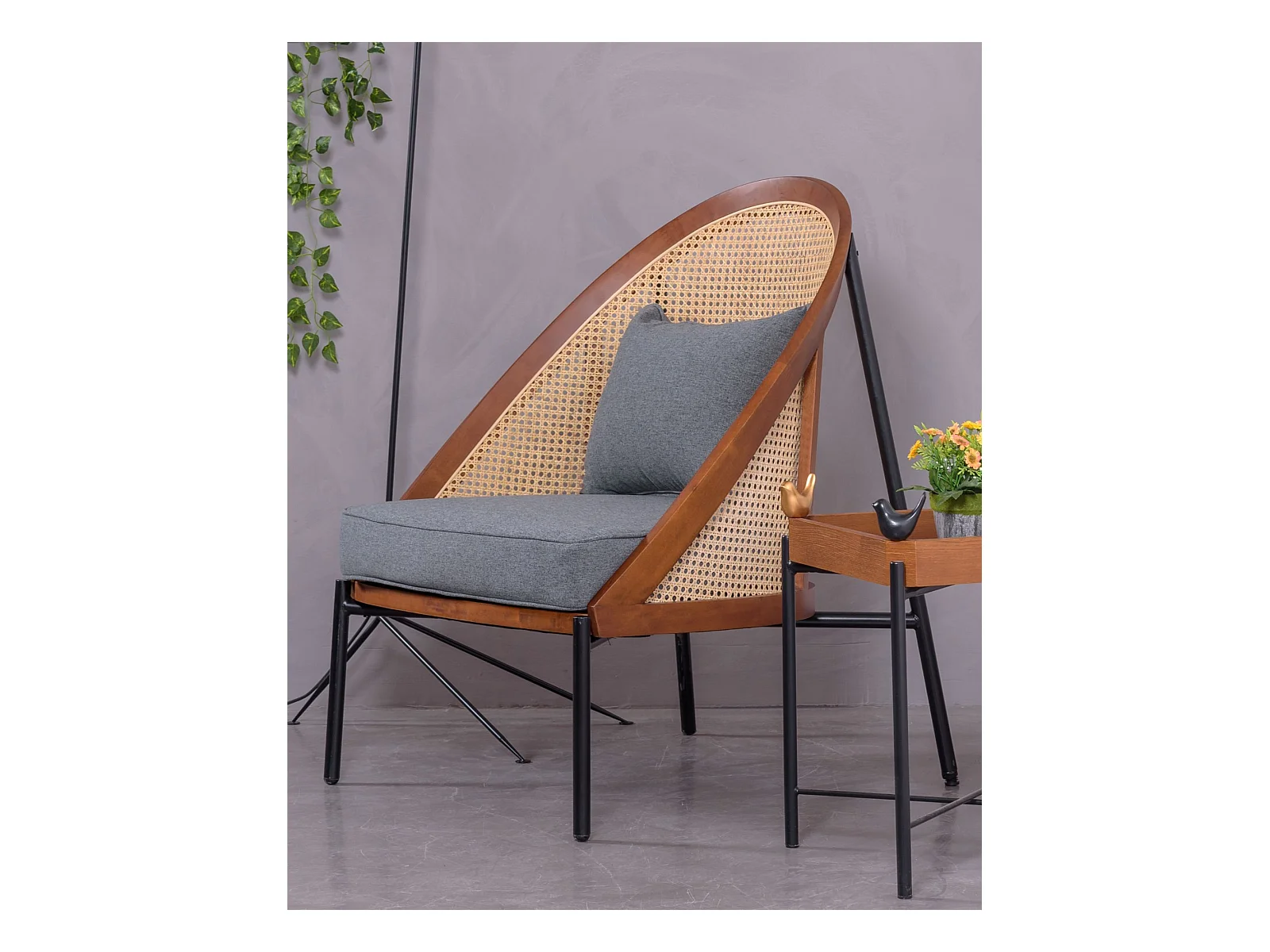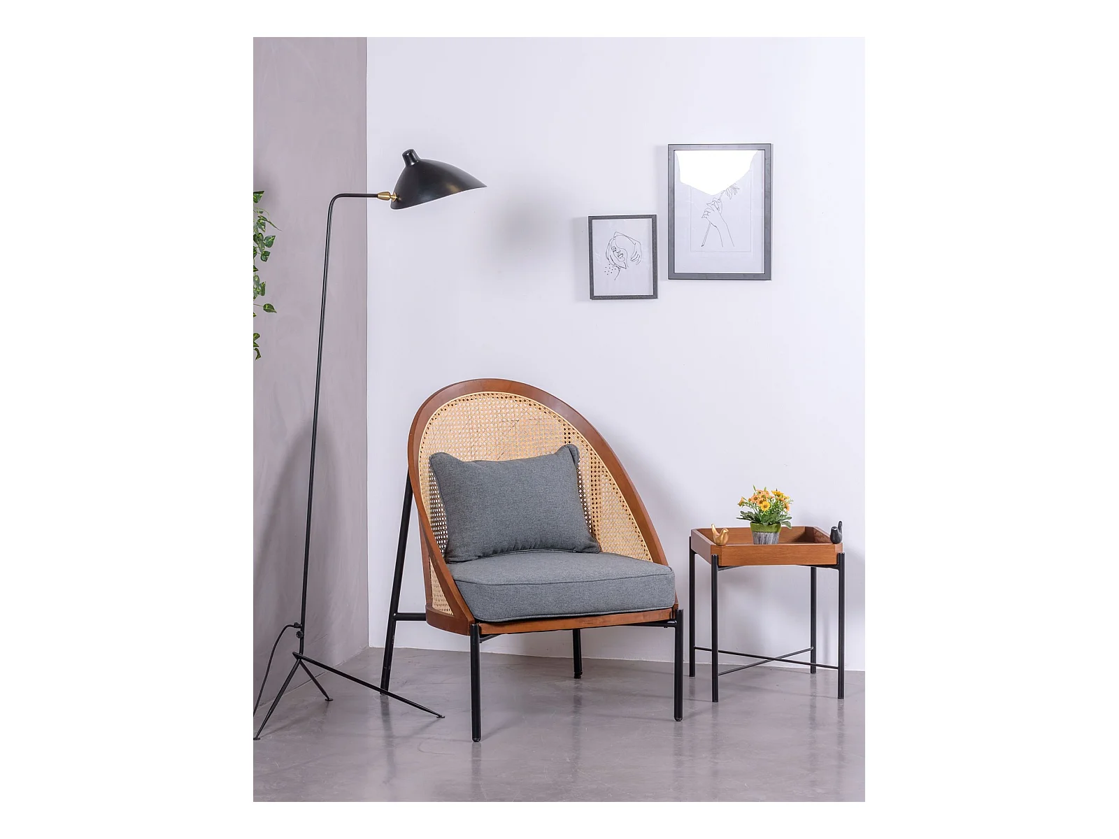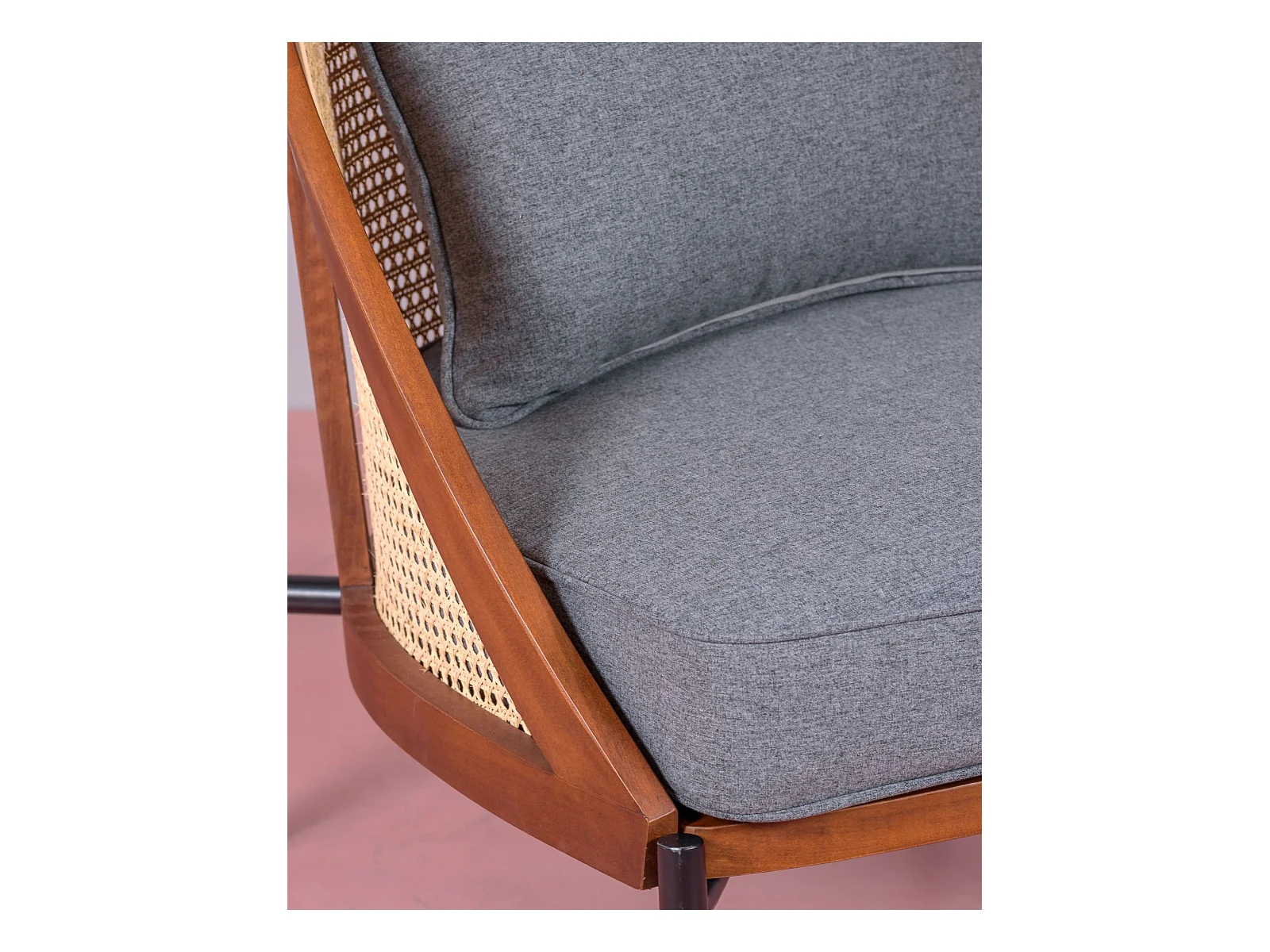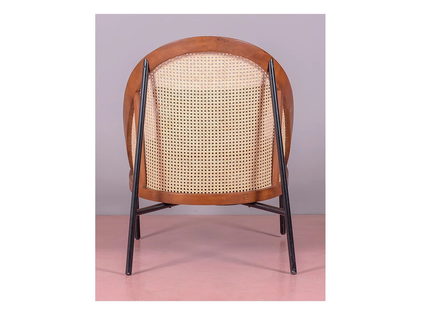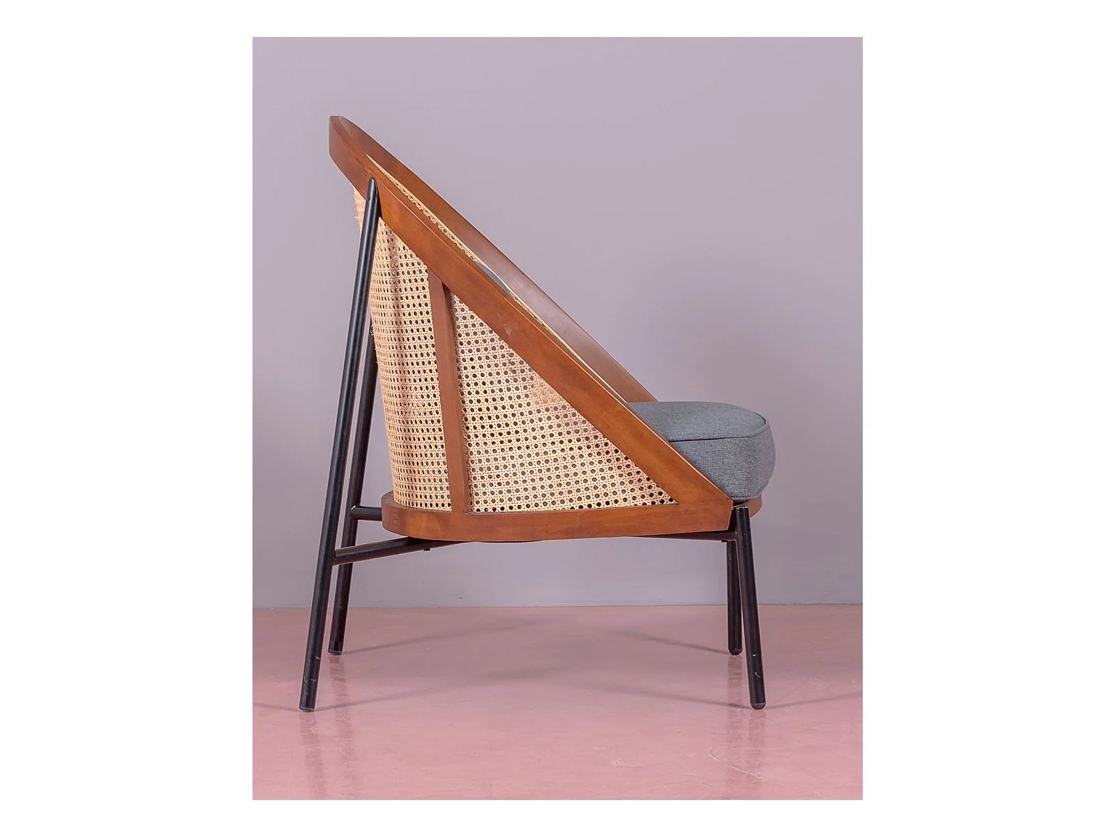 Vintage retro fauteuil van walnoothout en natuurlijk rotan - Robín - Okkernoot