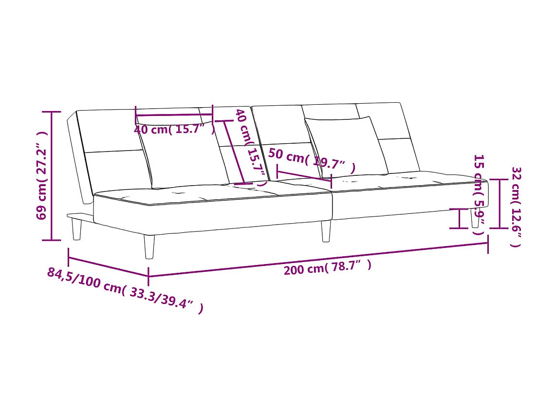 Slaapbank 2-zits met 2 kussens fluweel zwart