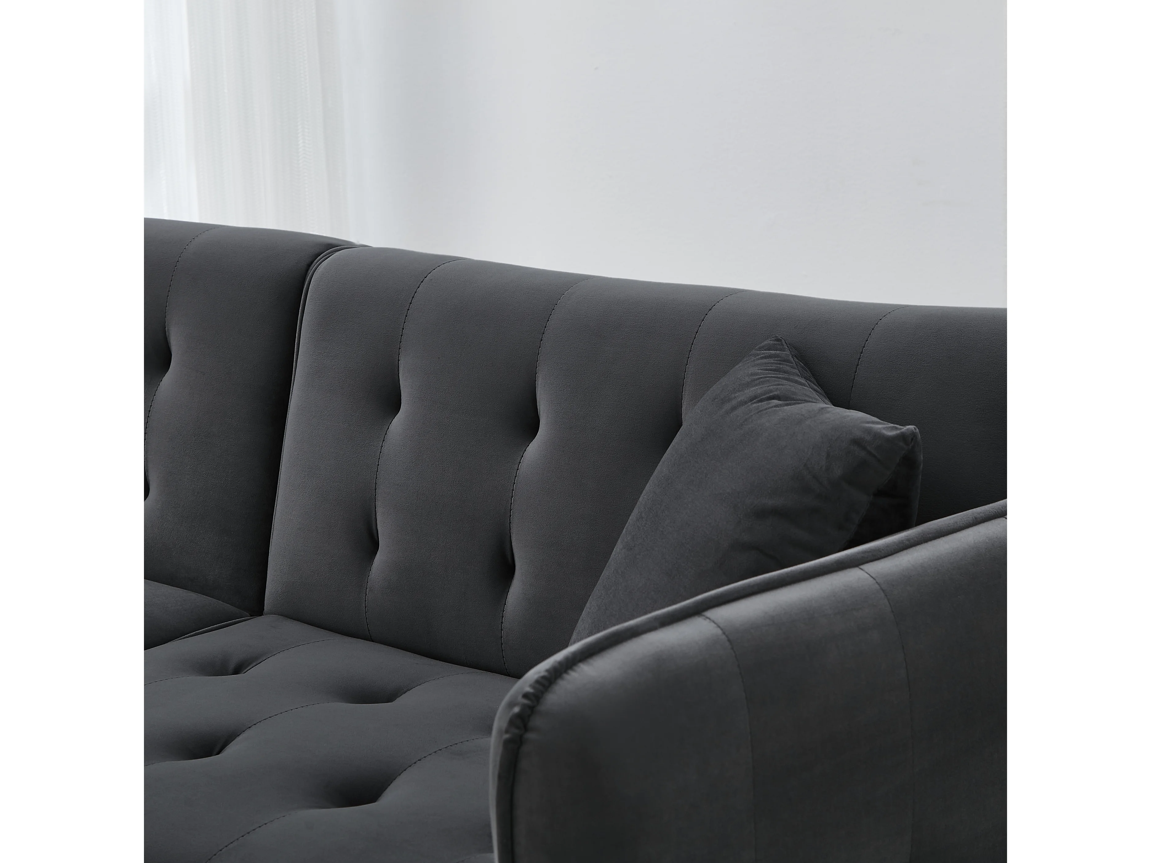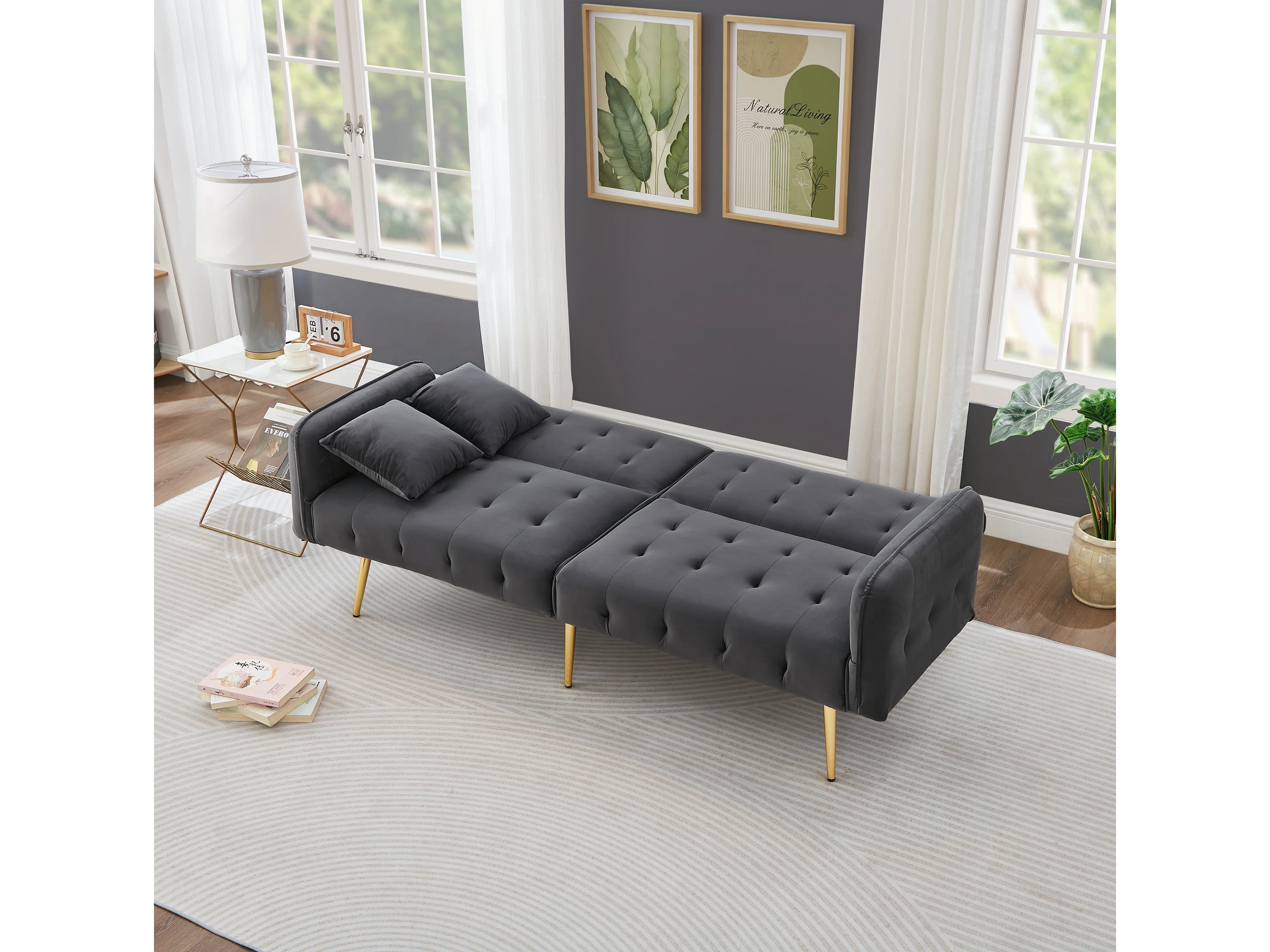 Slaapbank – 2-Zits met Dubbel Verstelbare Rugleuningen en 6-Stand Armleuningen – 215x81,5 cm Ligvlak voor Kleine Woningen – Fluweel – Antiekgrijs