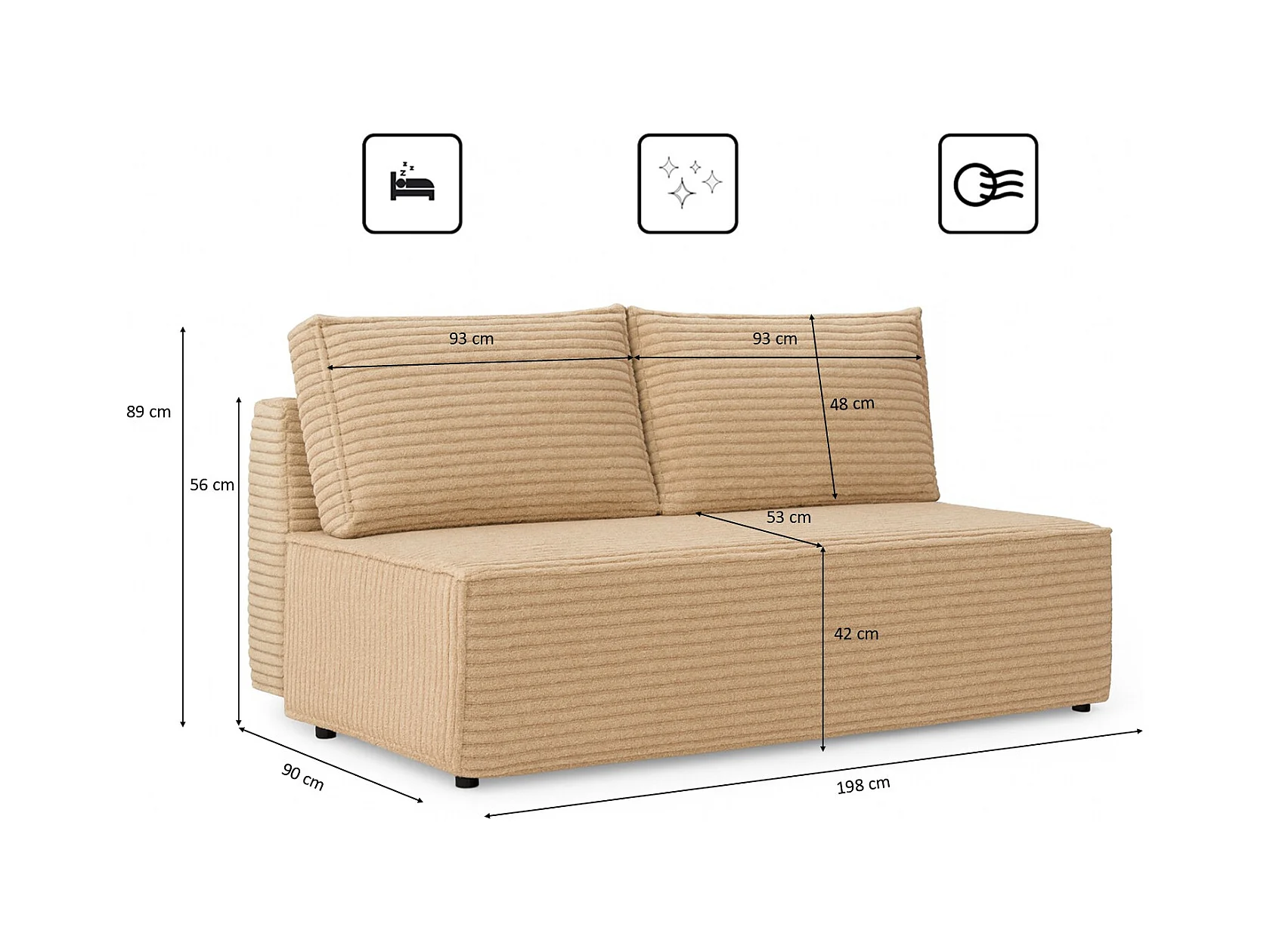 Slaapbank, bank met slaapfunctie en bedkast, DUO, stof Velo, beige