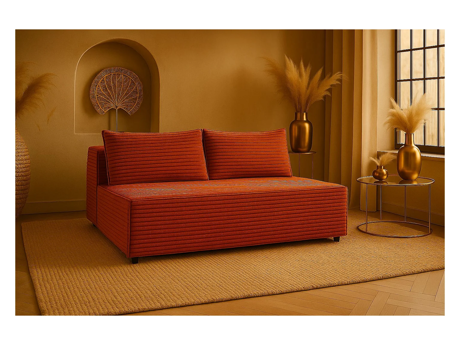 Slaapbank, bank met slaapfunctie en bedstee, DUO, stof Velo, koper