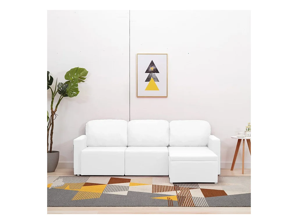 Slaapbank driezits modulair kunstleer wit