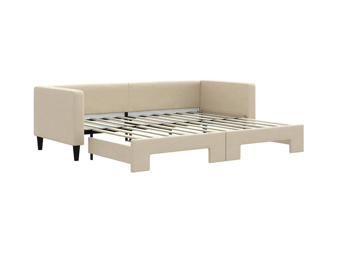 Slaapbank met onderschuifbed en matrassen 80x200 cm stof crème