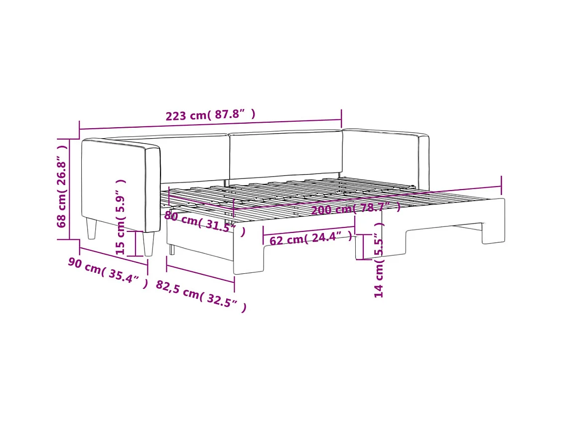 Dagbed met onderschuifbed en lades zonder crème matras 80x200cm