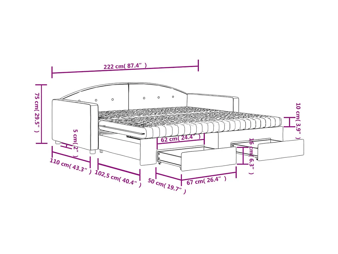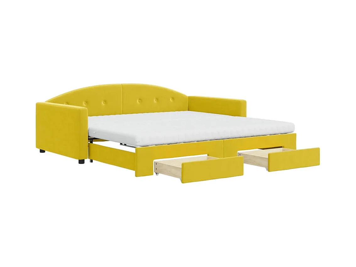 Slaapbank met onderschuifbed en lades 100x200 cm fluweel geel