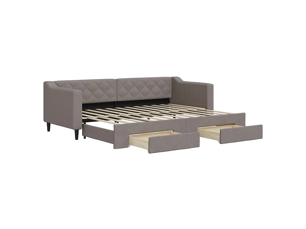 Slaapbank met onderschuifbed en lades 80x200 cm stof taupe