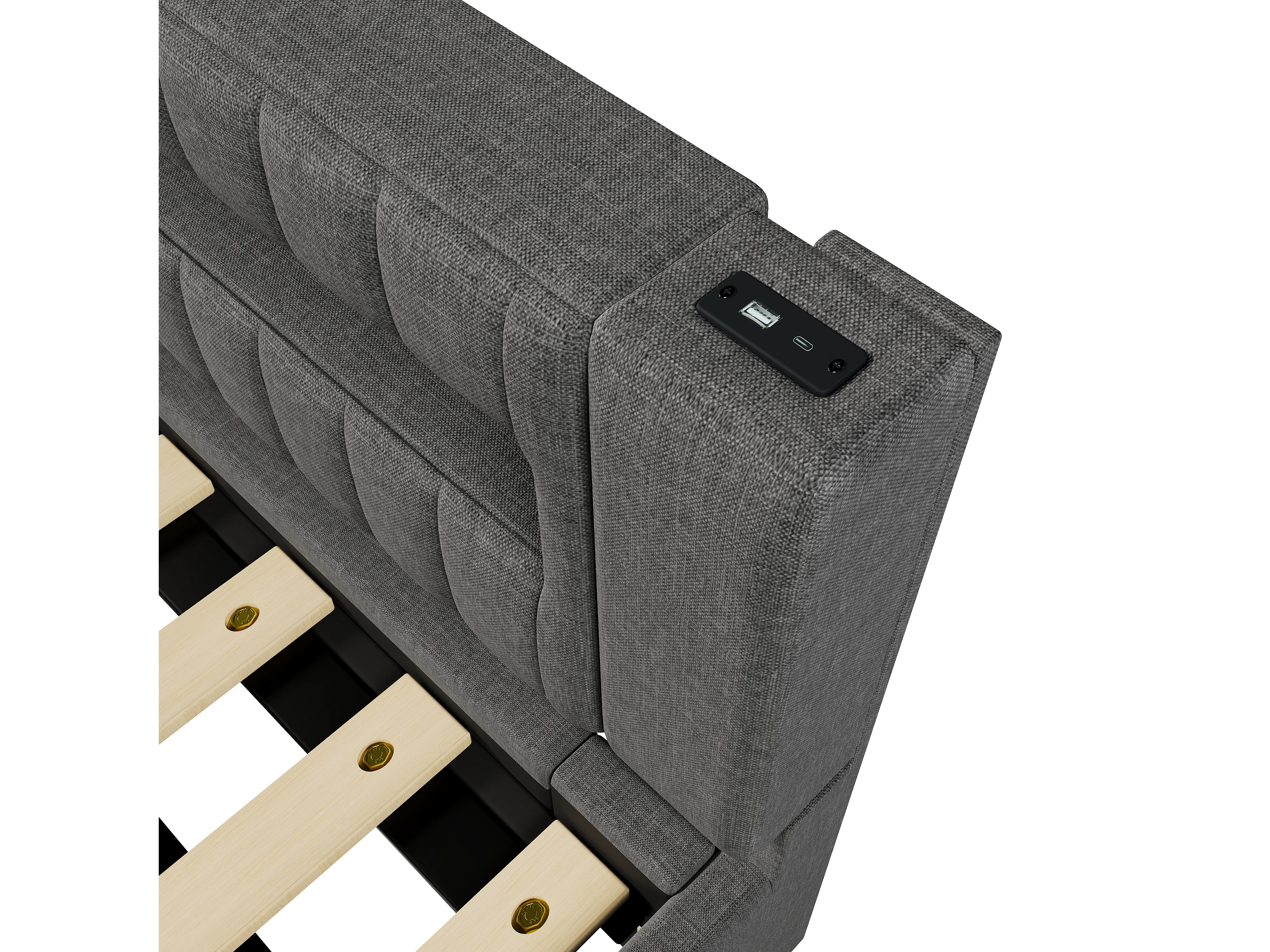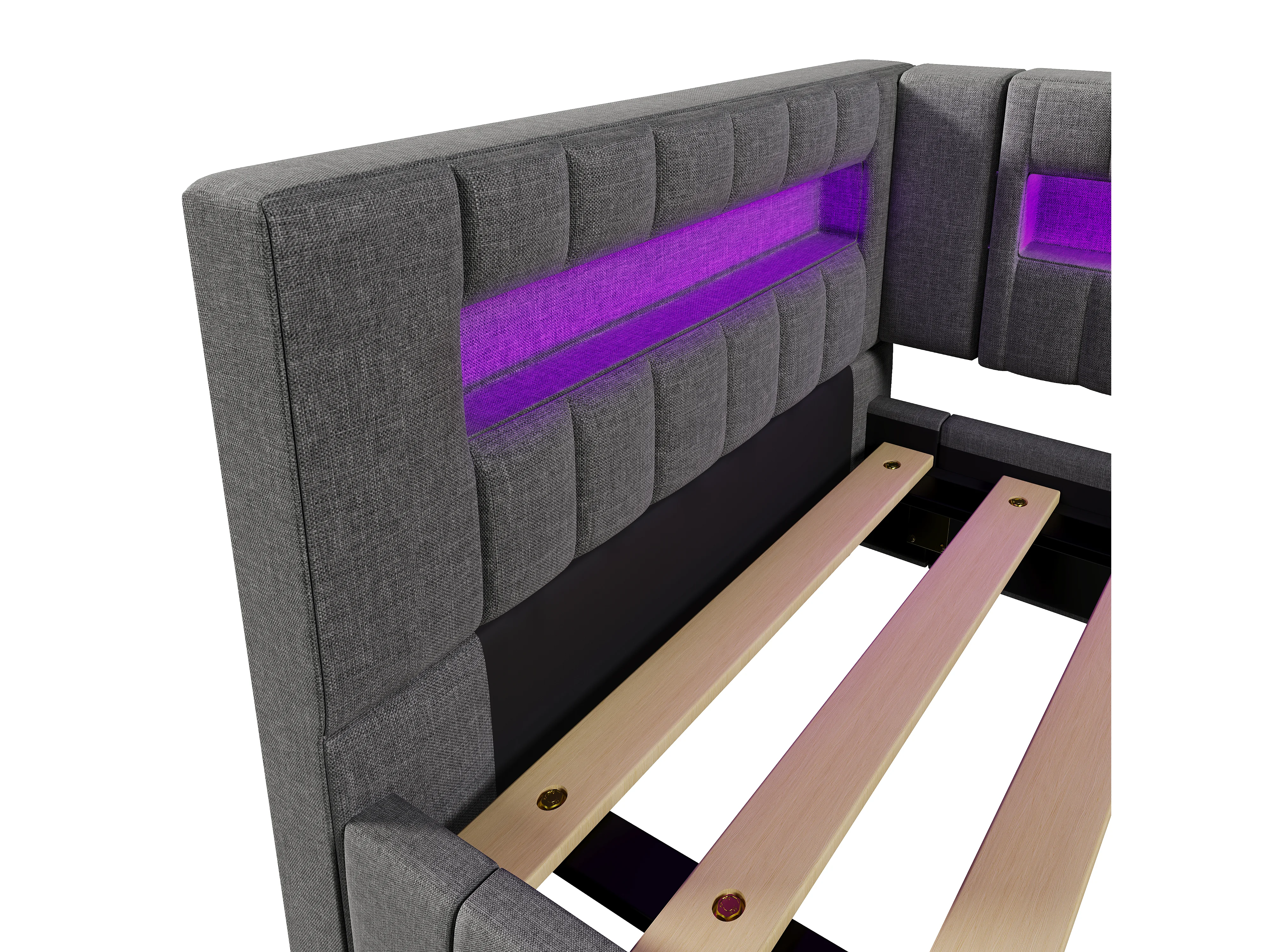 Slaapbank met opbergruimte 90x200 cm - met LED-lichtstrip - met USB- + TYPE-C-aansluitingen - linnen - grijs (zonder matras)