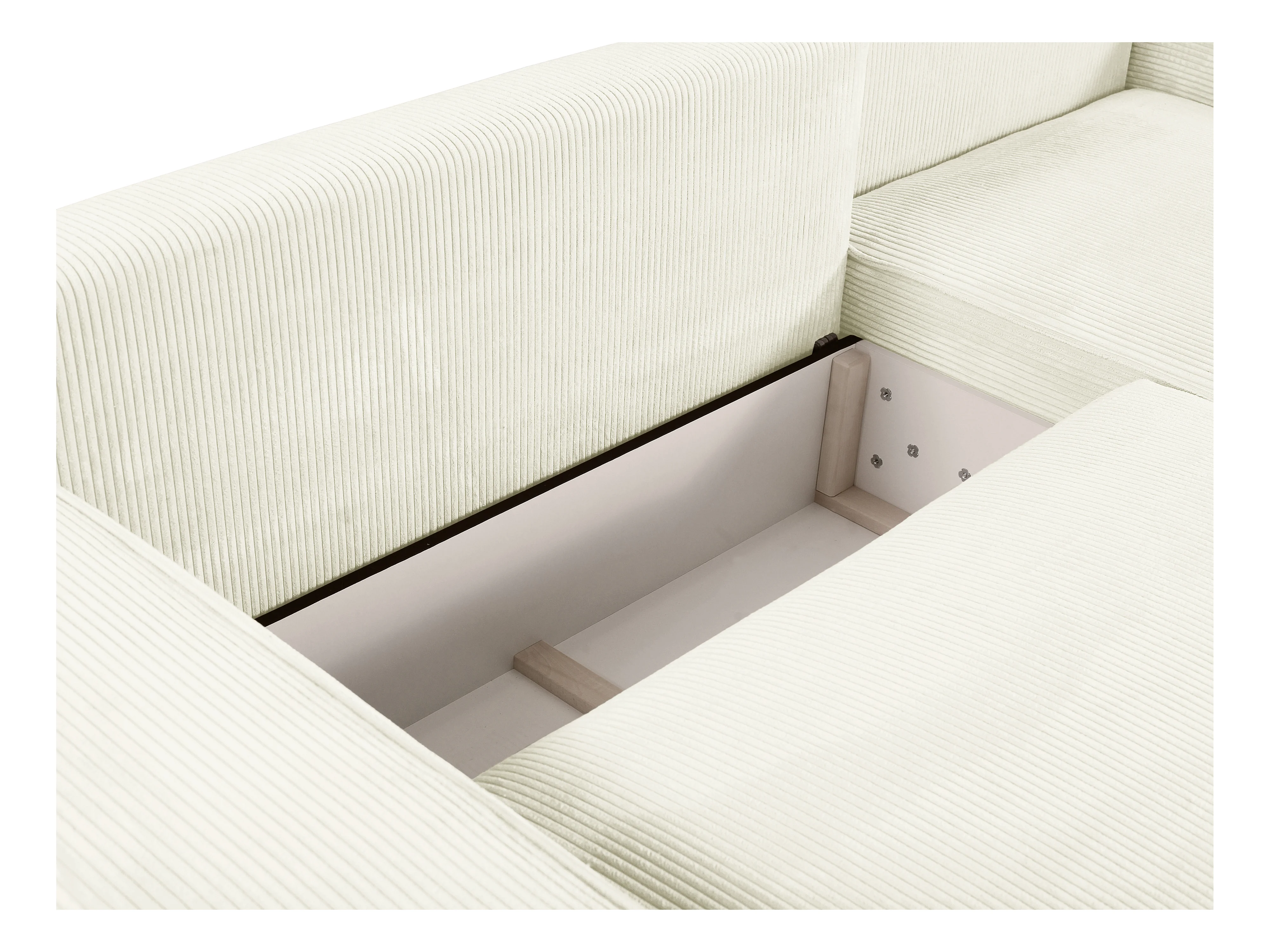 Slaapbank met hoek rechts van wit ribfluweel AMELIA