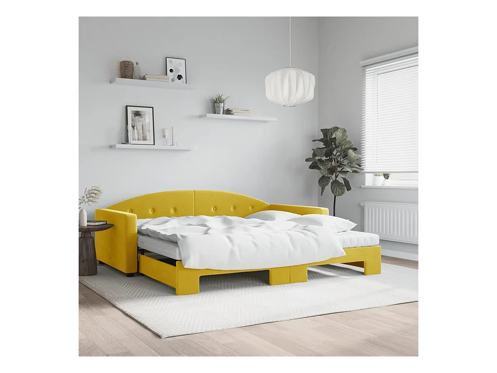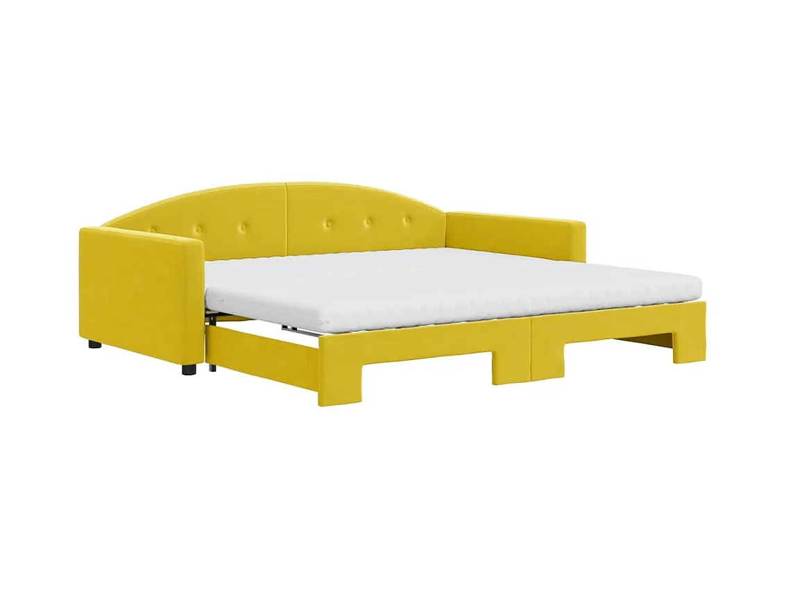Slaapbank onderschuifbed en matrassen 100x200 cm fluweel geel
