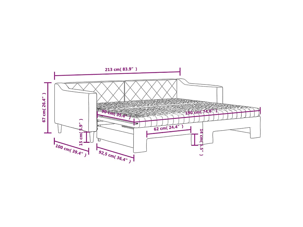 Slaapbank onderschuifbed matrassen 90x190 cm stof donkergroen