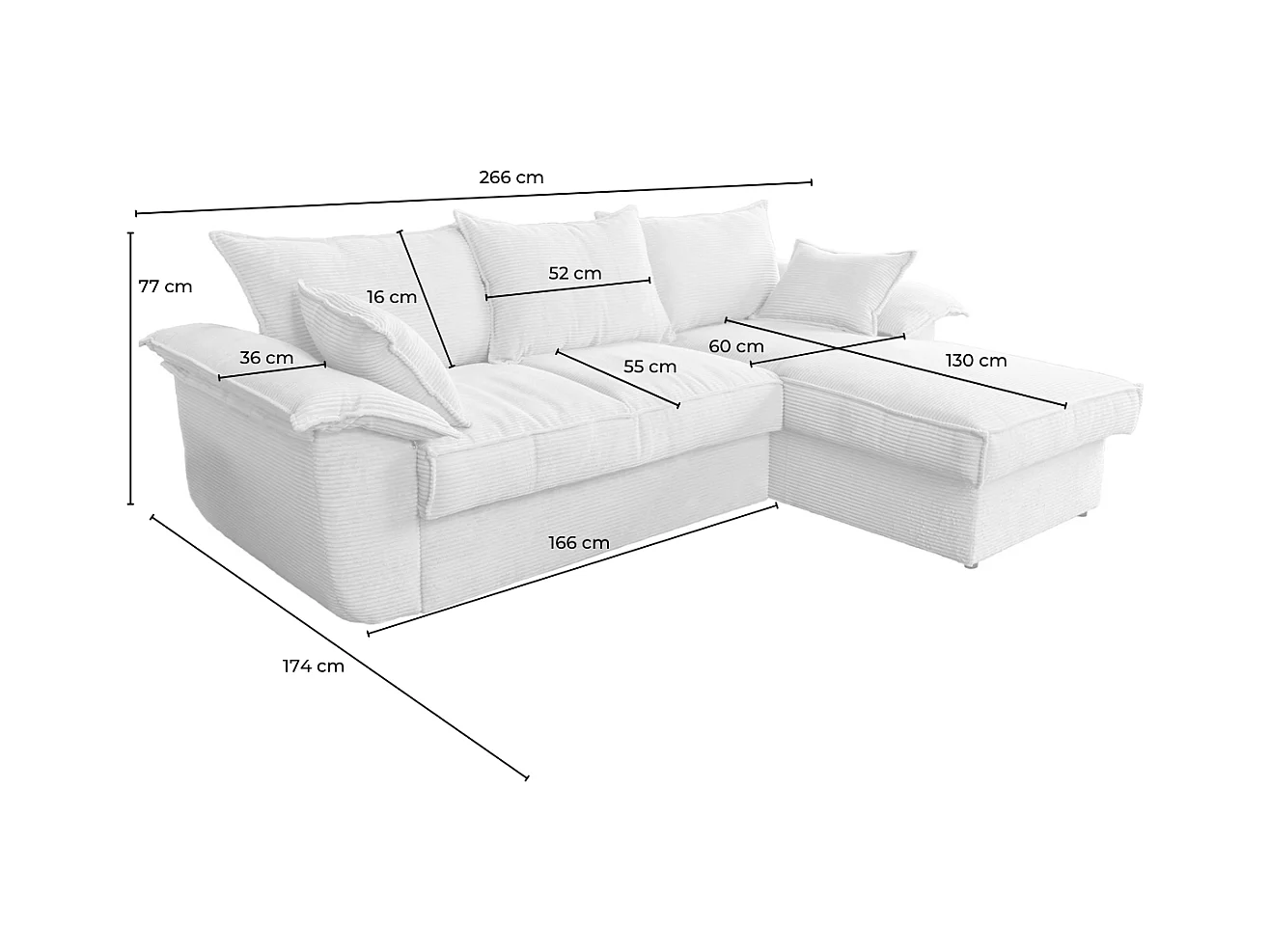 Express-driezitsslaapbank van roze ribfluweel - Bed 140 cm - Matras van 14 cm LORETO
