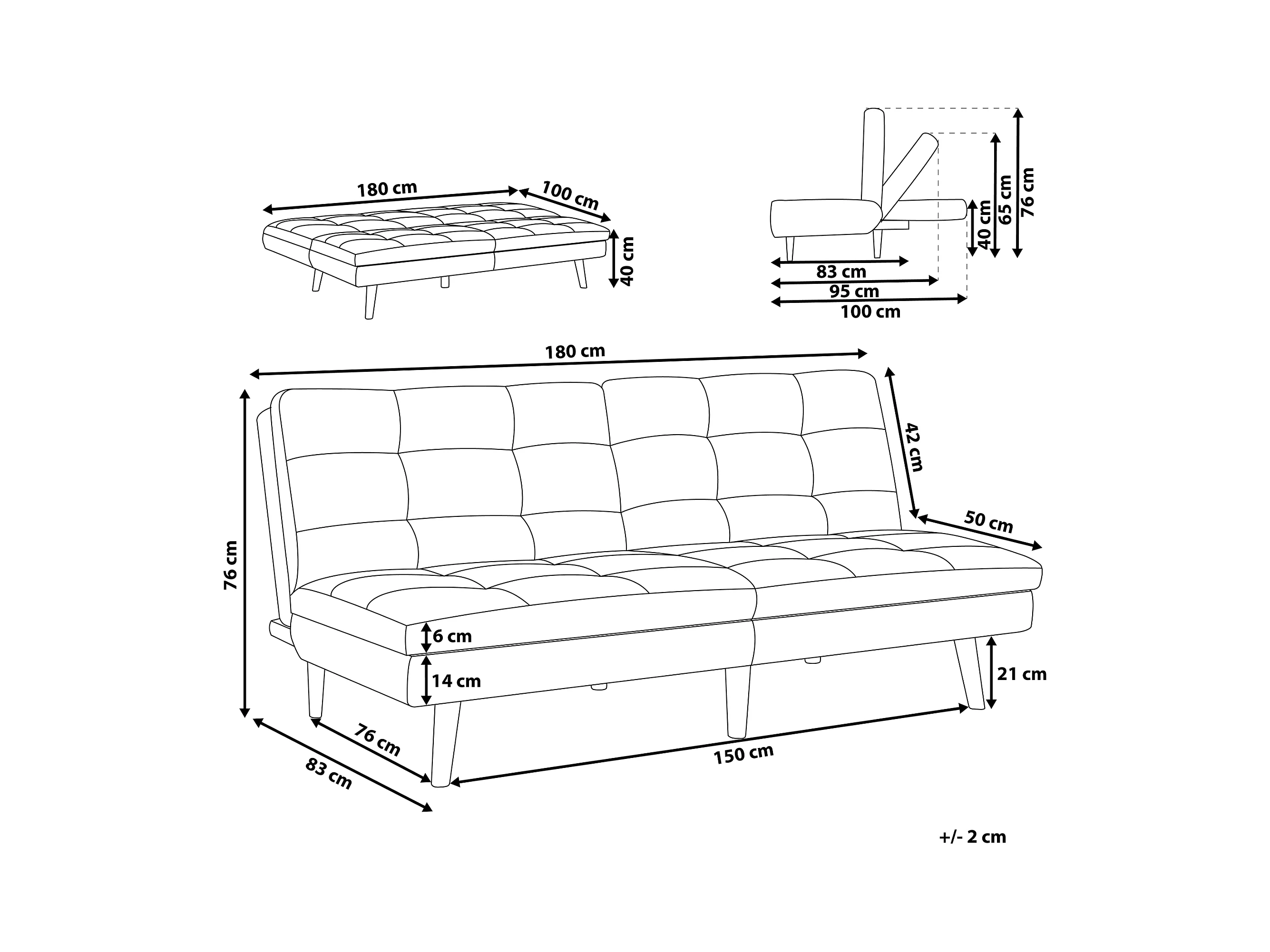 Klik-klak slaapbank - Zwart
