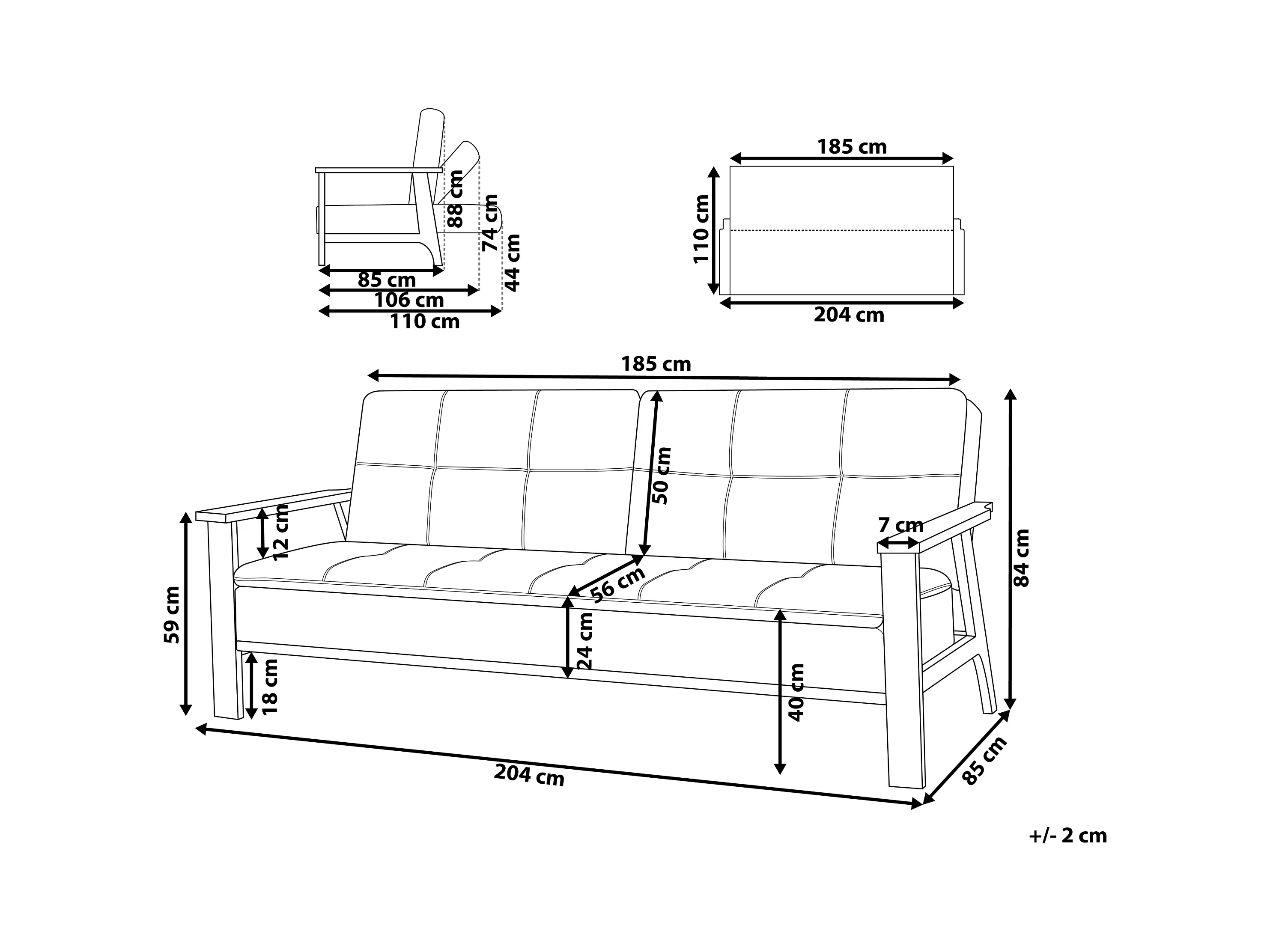 Slaapbank SILJAN Stof Grijs Lichtgrijs 3-zitter