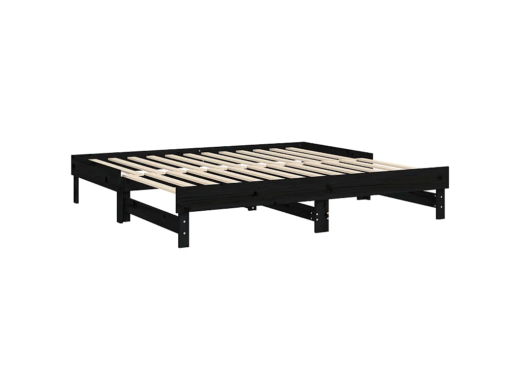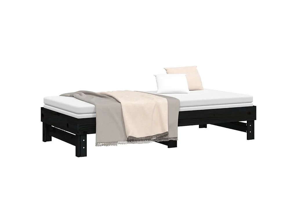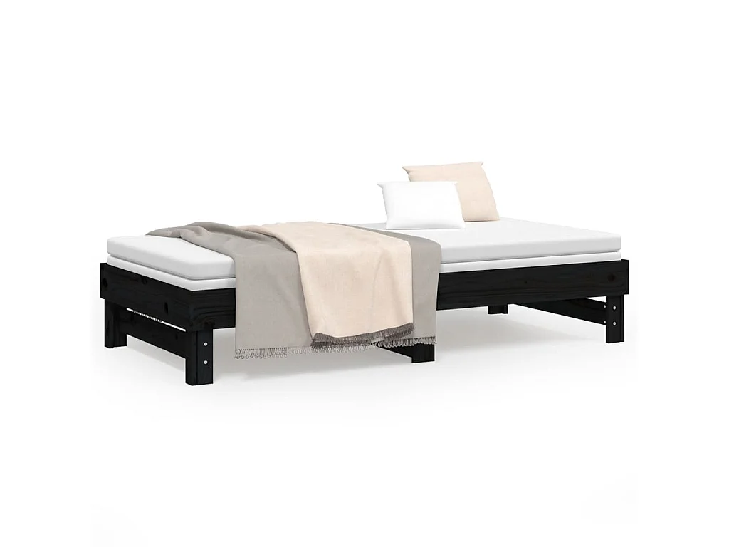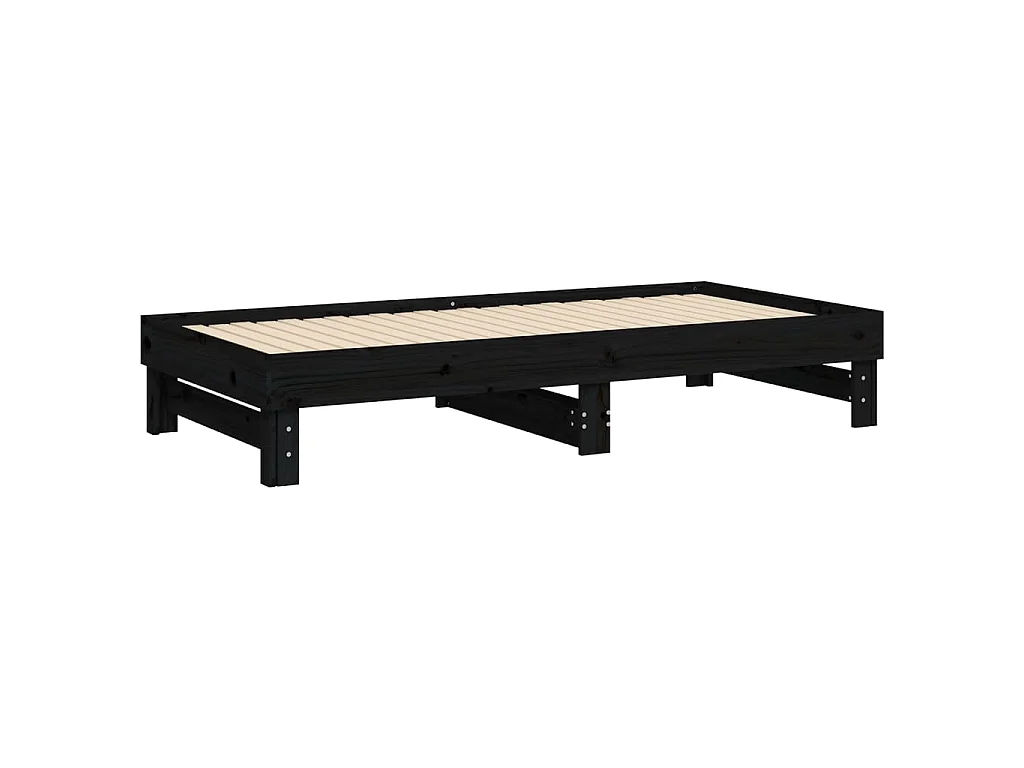 Slaapbank uitschuifbaar massief grenenhout zwart 2x(90x190) cm