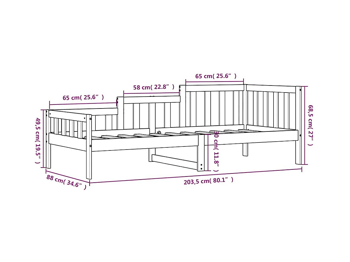 Slaapbank zonder matras 80x200 cm massief grenenhout