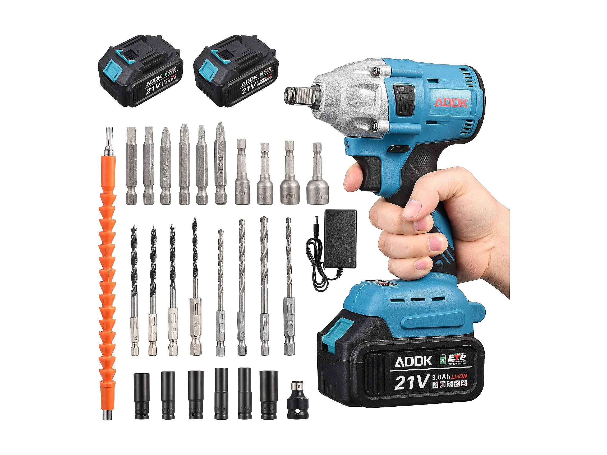 Slagmoersleutel, 21V 3.0Ah accu, borstelloze slagmoersleutel, wielbouten, 25-delige accessoirebox - Blauw