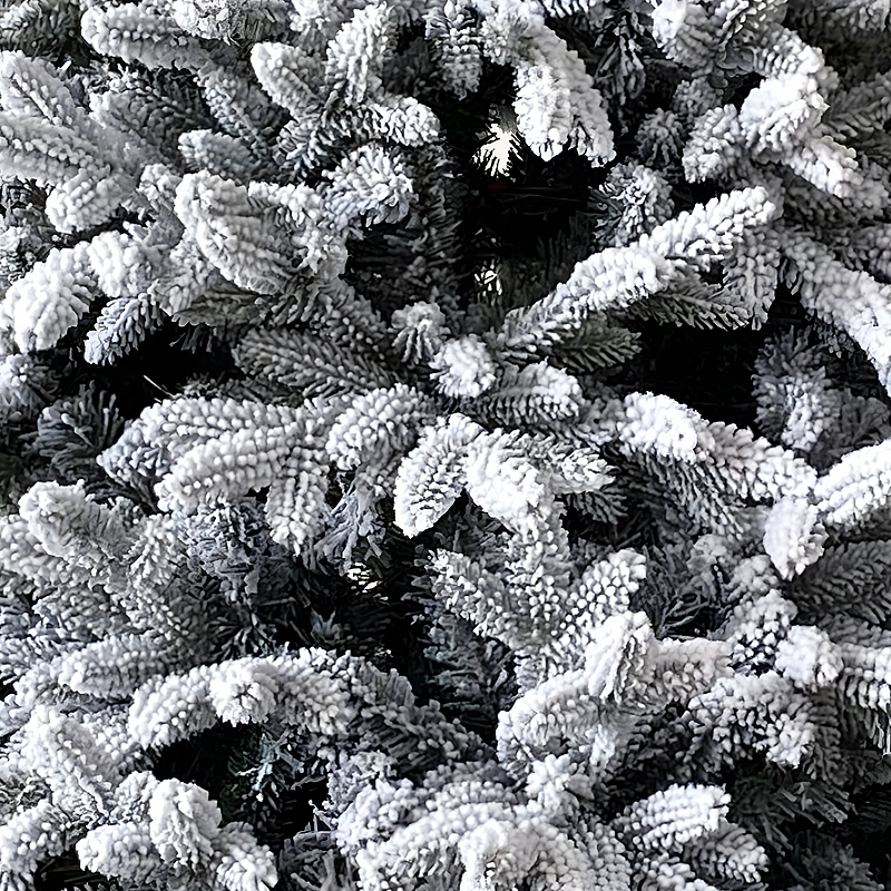 Slanke, moderne, met sneeuw bedekte kerstboom "Comet" in PE met Real Touch + Flock-effect, 240 cm hoog.
