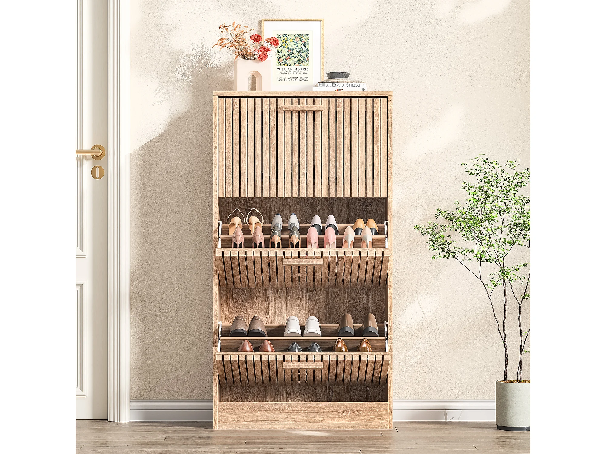 Smal schoenenkastje met kleppen, 113 x 60 x 24 cm, smal schoenenrek, hout