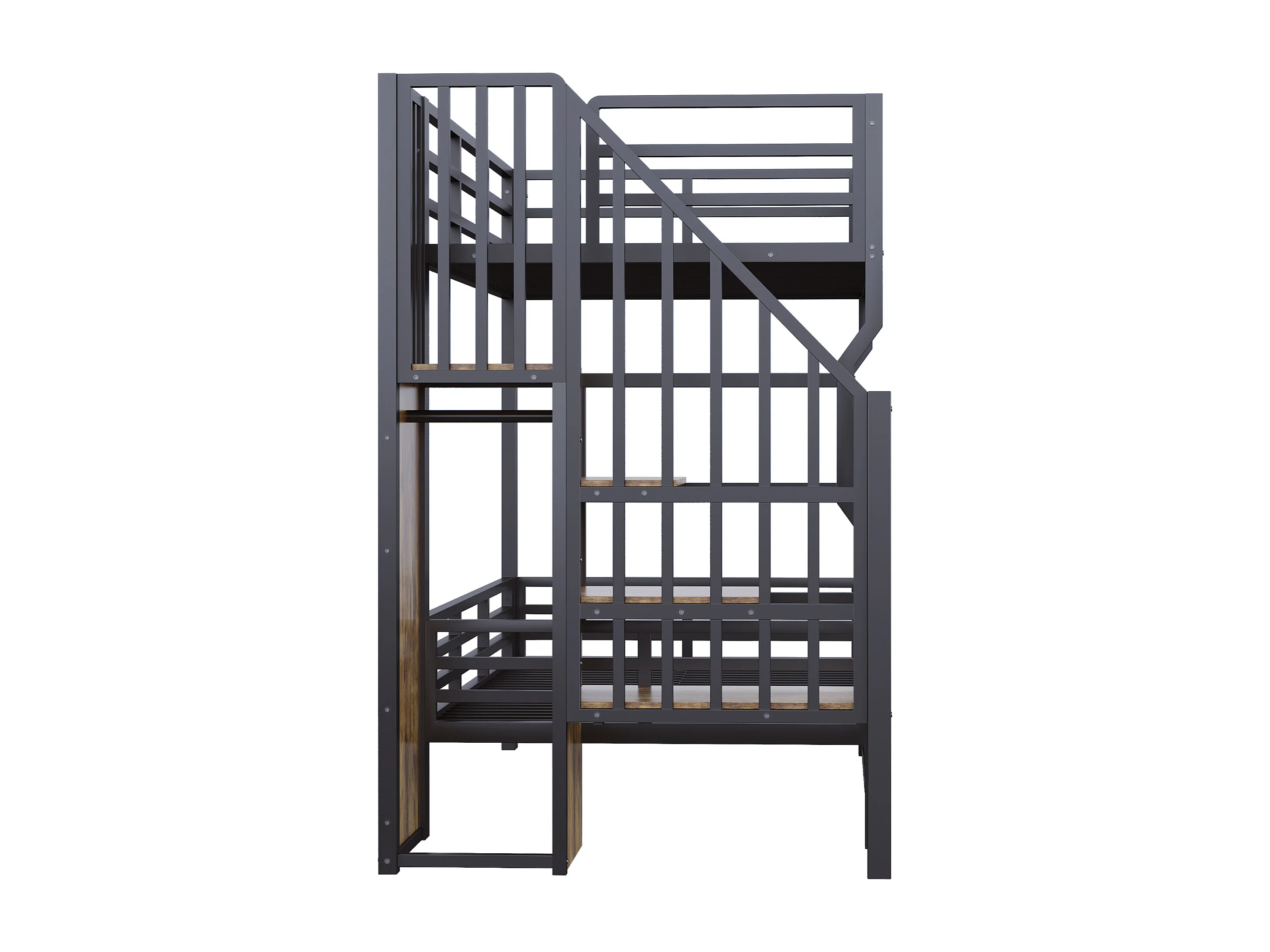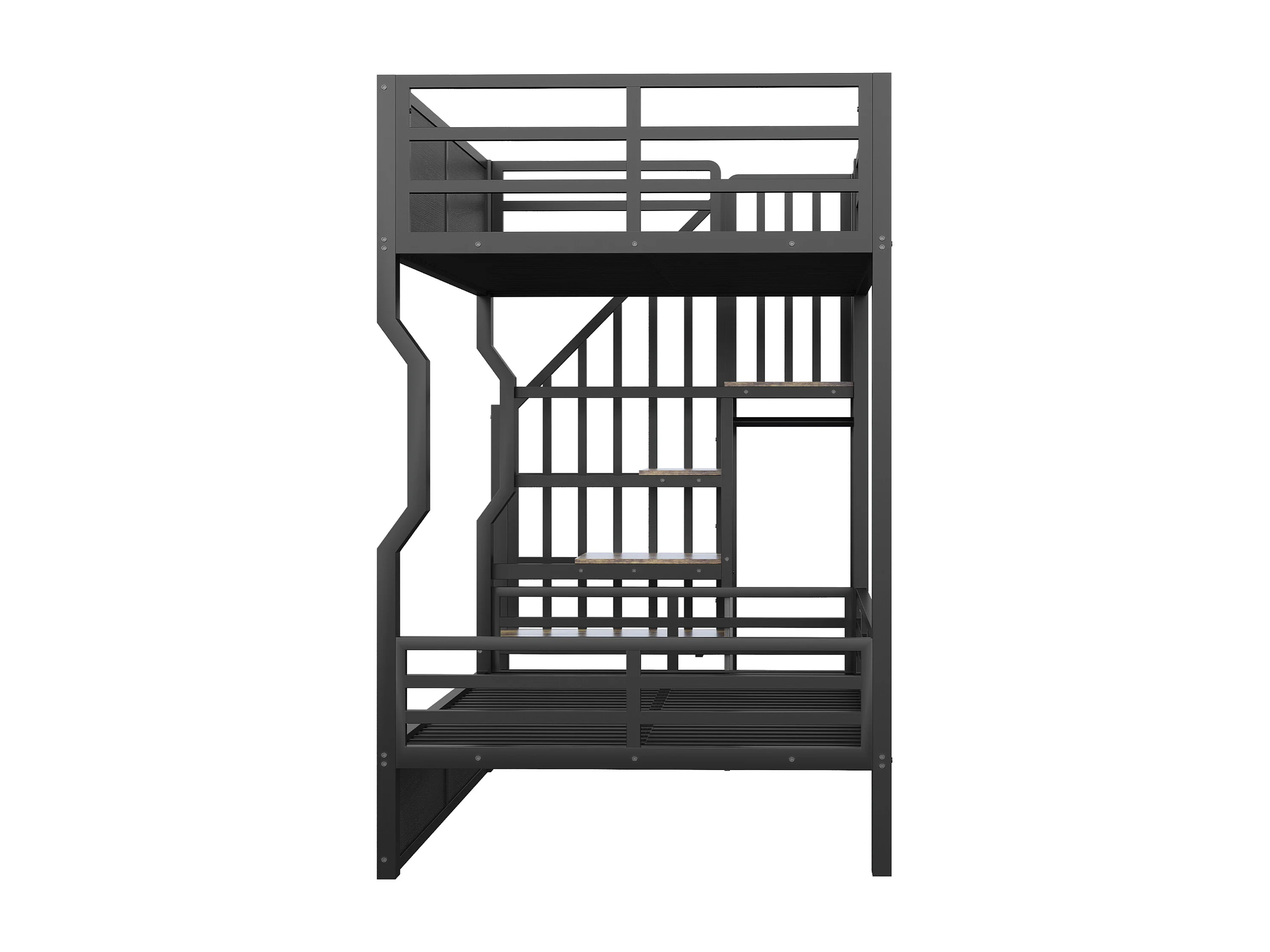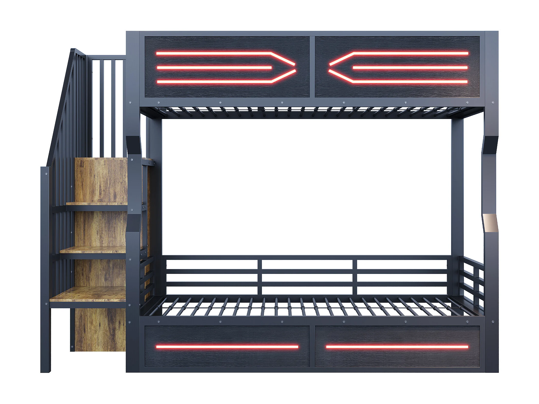 Smeedijzeren stapelbed voor kinderen - 2 x 90 x 200 cm - met LED-verlichting + opbergladder - MDF + metaal - zwart