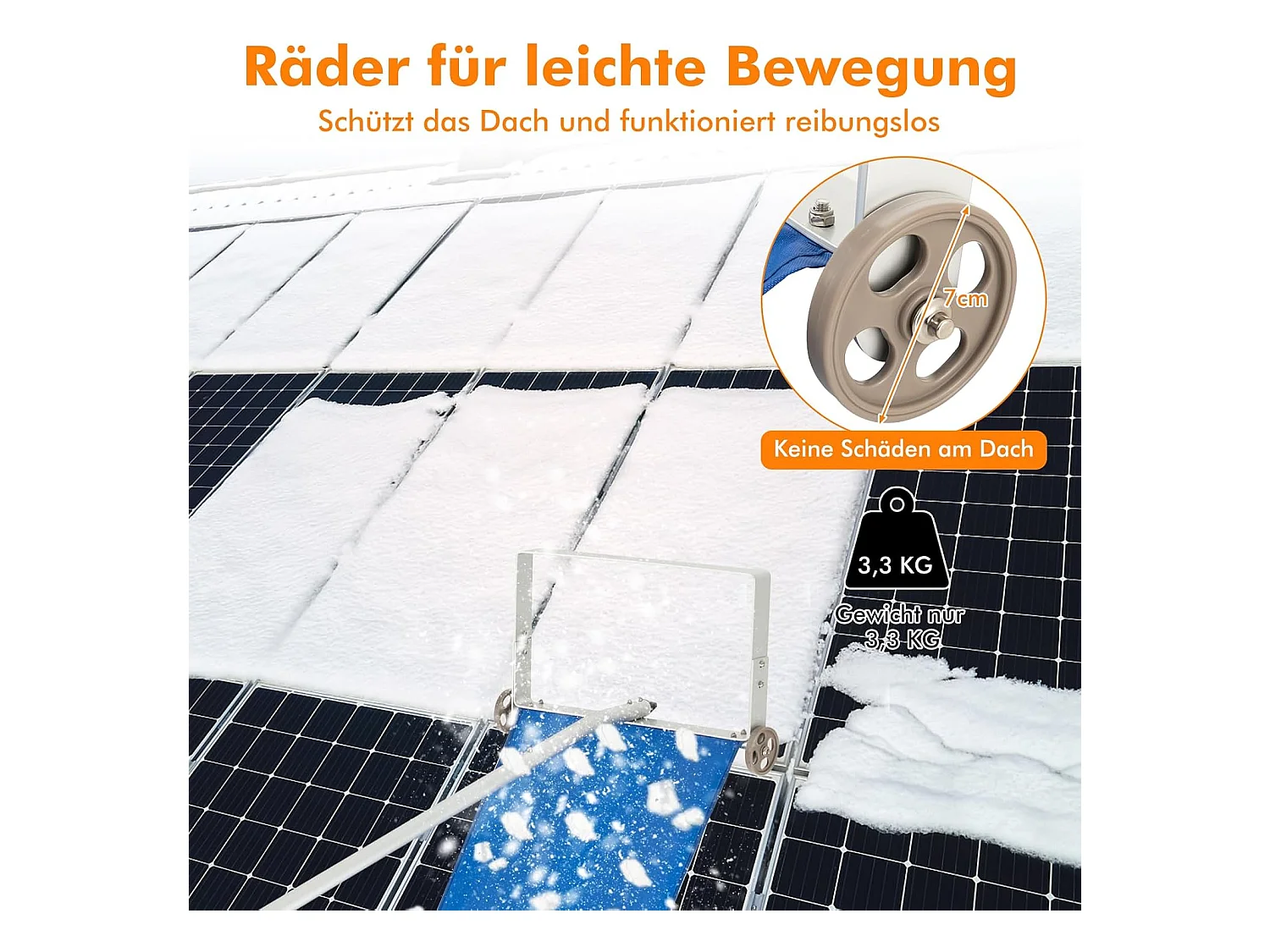 Sneeuwruimer met wielen voor dak, sneeuwruimer met telescoopsteel, antislip handgreep, dakruimer, sneeuwschep, sneeuwschuiver van aluminium, instelbereik 151-611 cm