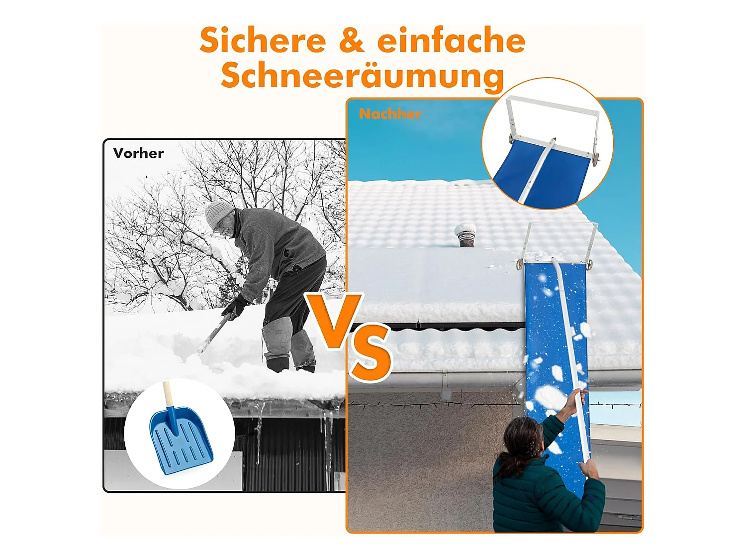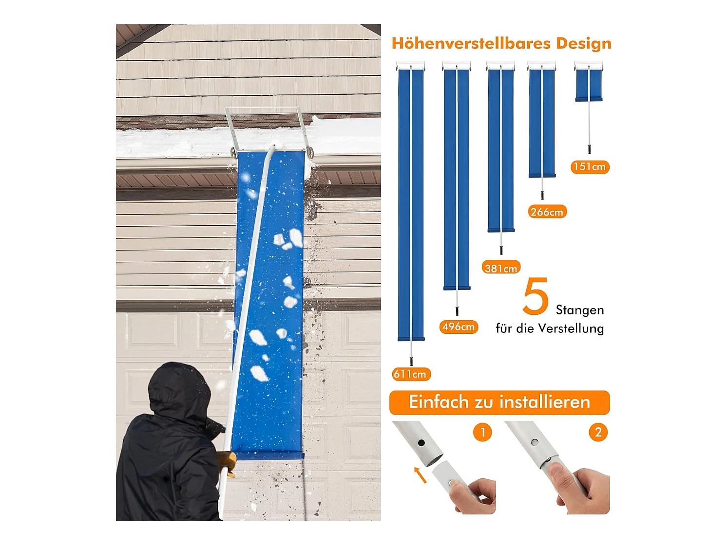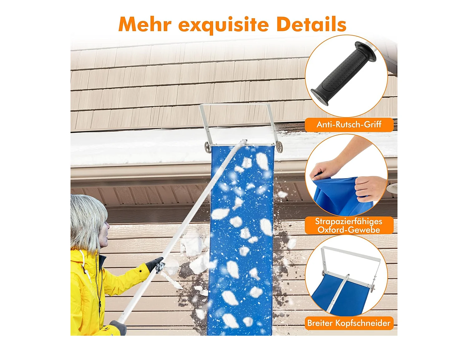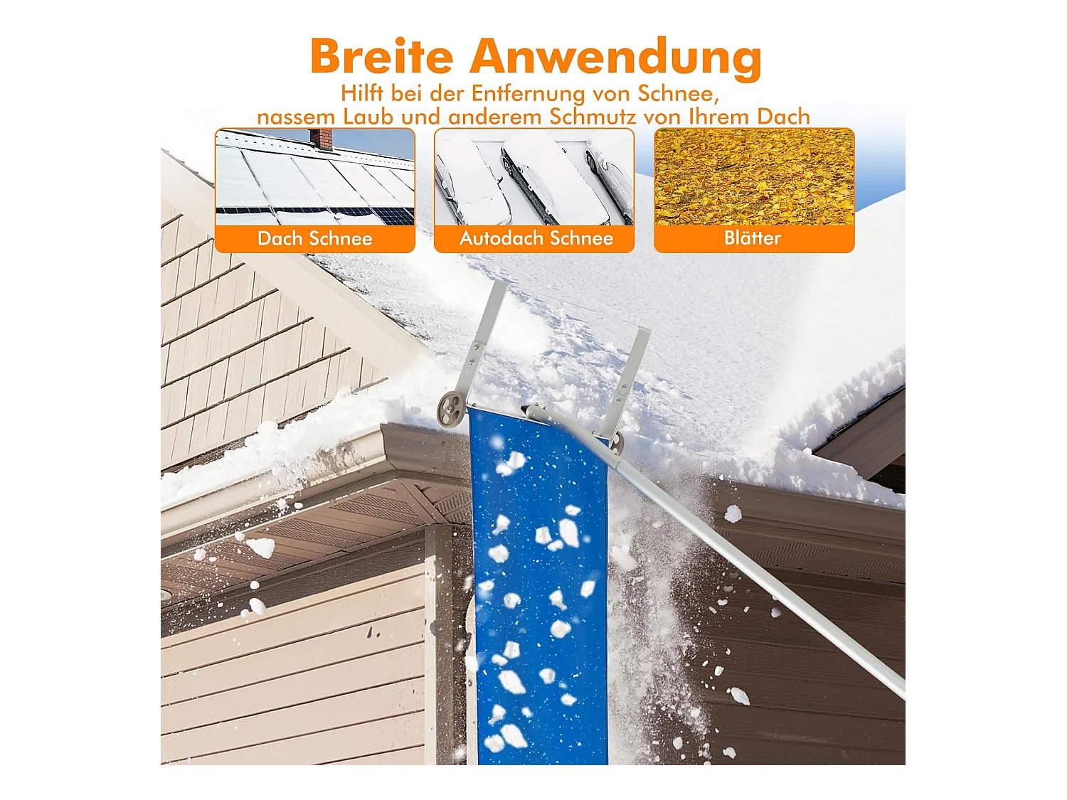 Sneeuwruimer voor dak, sneeuwruimer met telescoopsteel, antislip handgreep en klittenbandsluiting, dakruimer, sneeuwschuiver van aluminium, instelbereik 170-608 cm