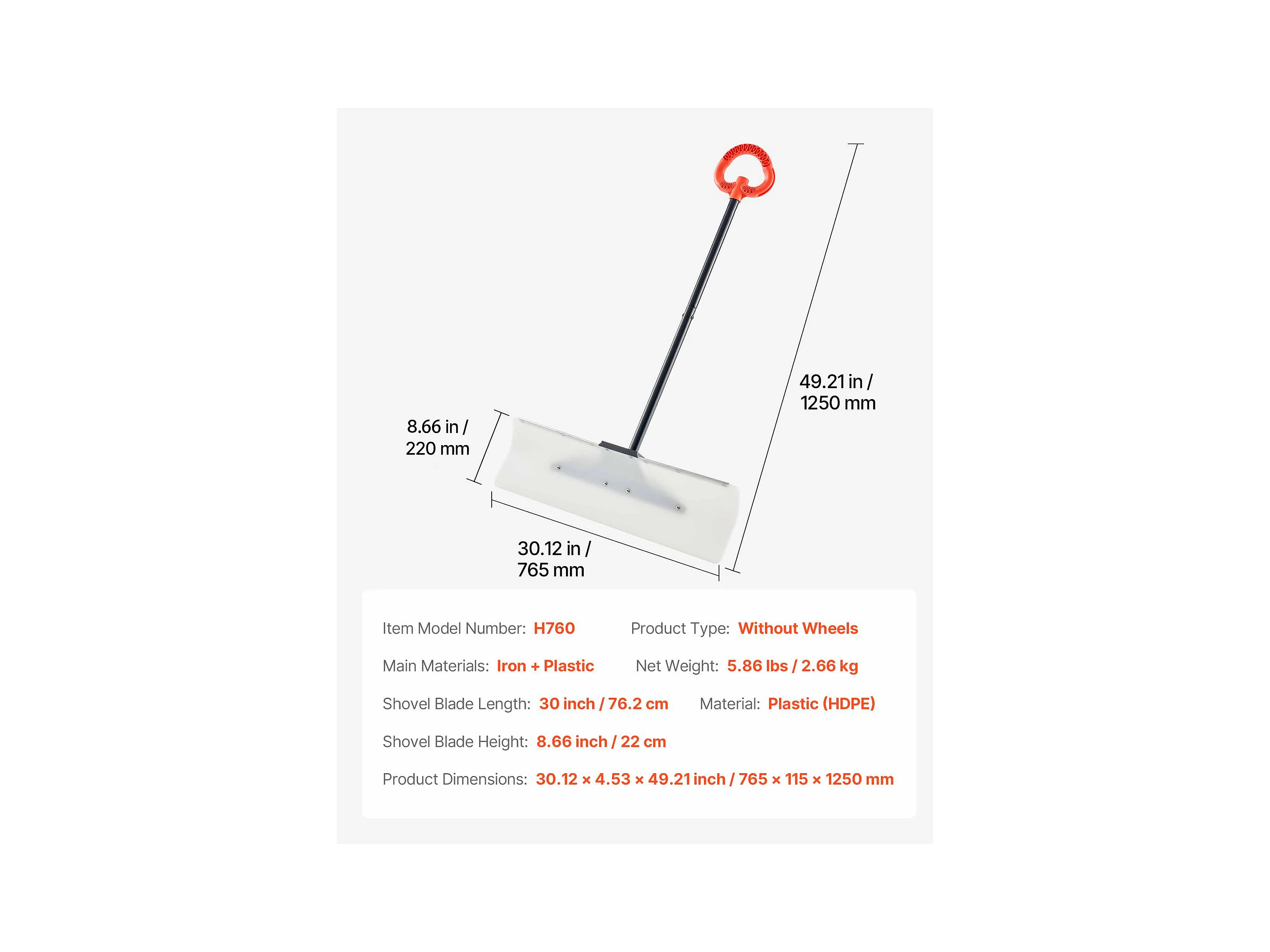 Sneeuwschuiver SucceBuy, 76,2 cm, Sneeuwschuiver met Ergonomisch Handvat, Lemmet van PEHD Kunststof, Sneeuwruimer met Gesegmenteerd Handvat, Sneeuwschuiver