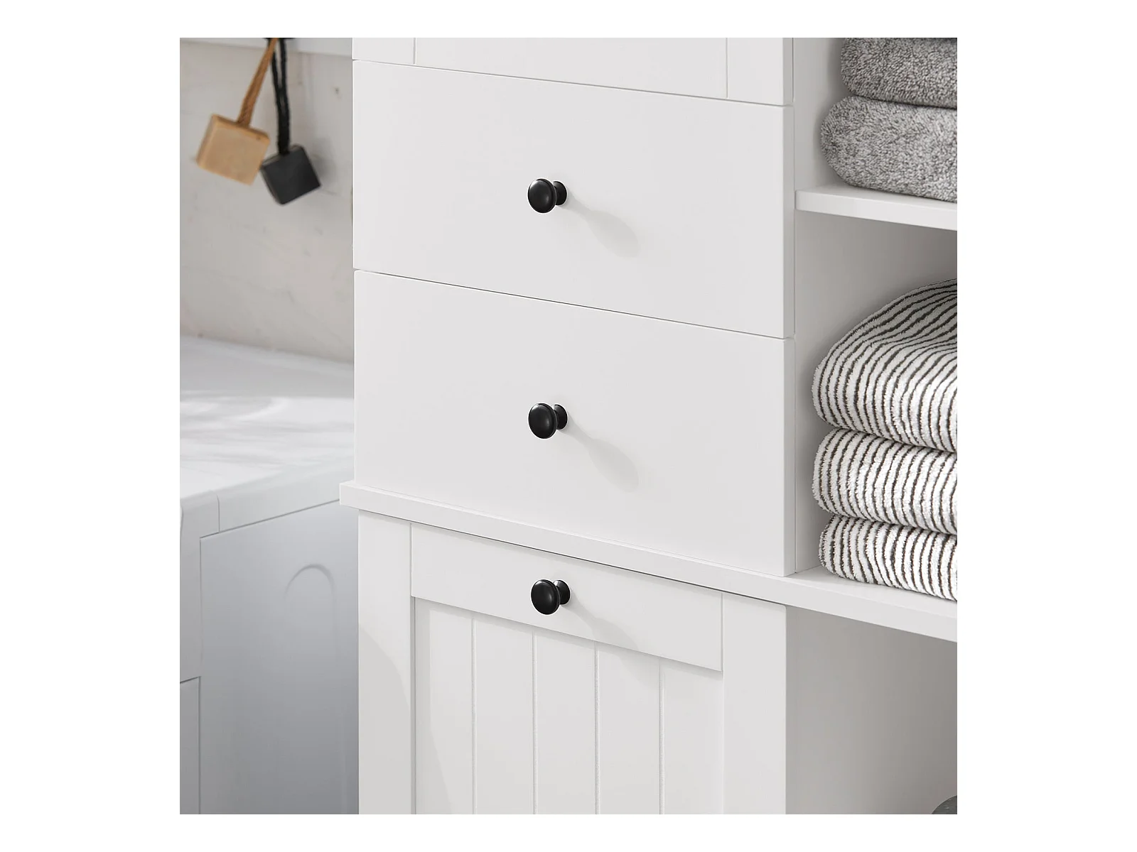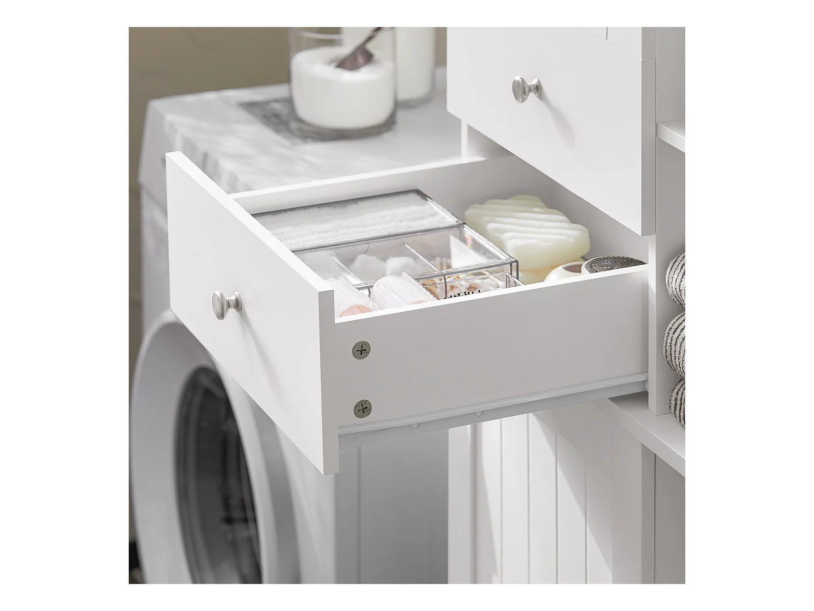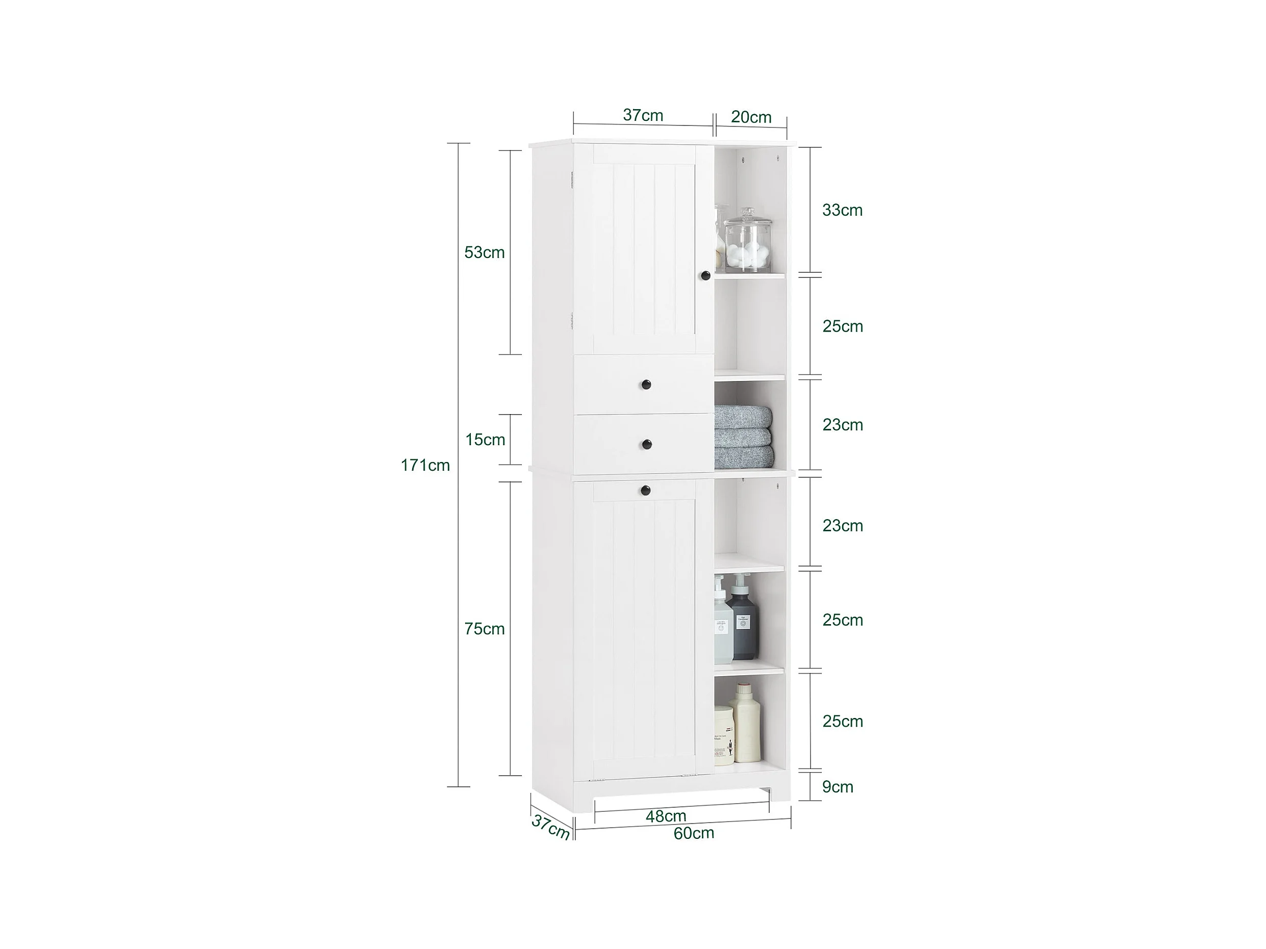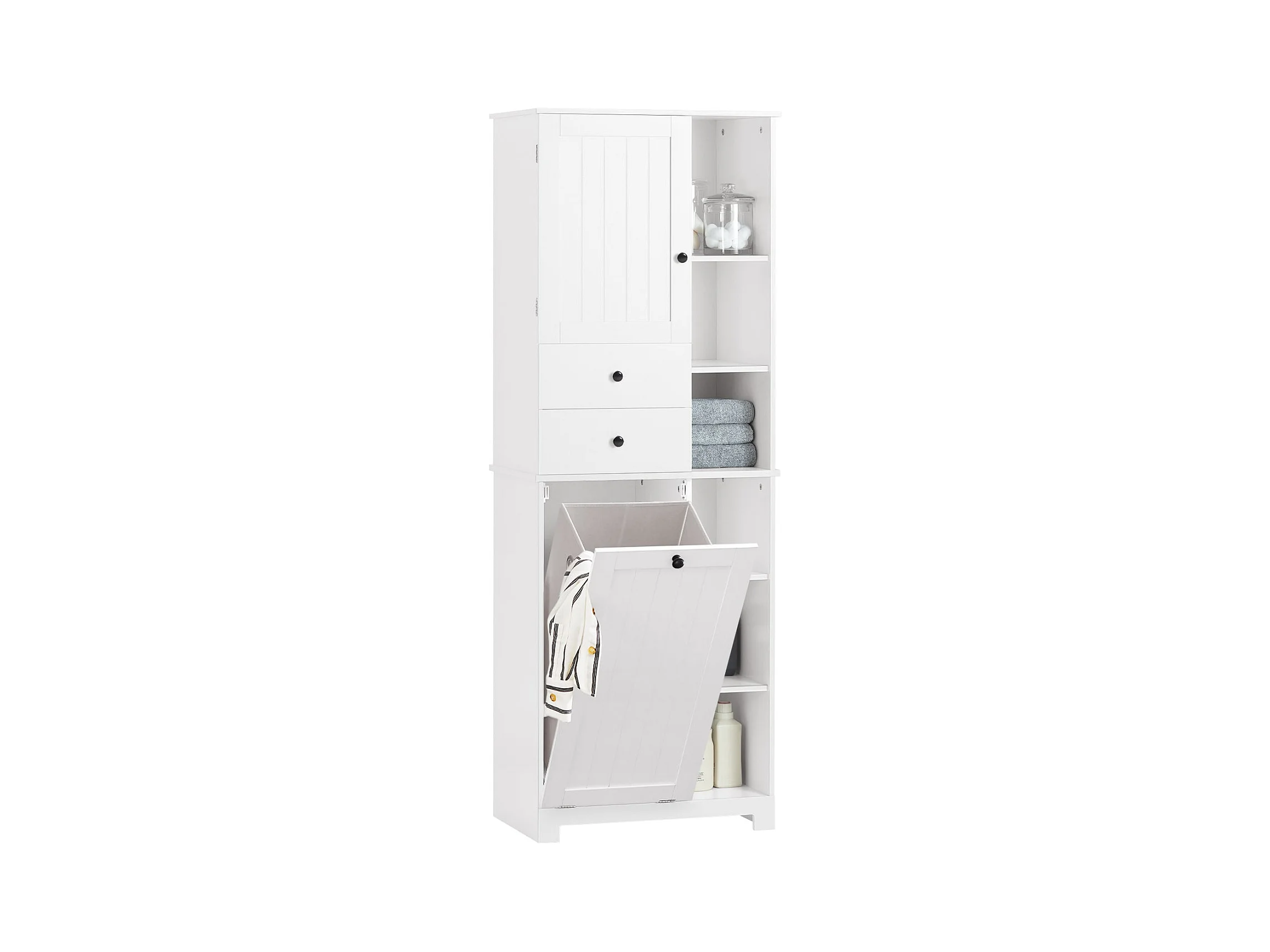 SoBuy Badkamerkolommeubelkast Hoog Toiletkast Opbergmeubel voor badkamer, wasruimte, met 2 deuren en 2 laden, 6 planken en 1 wasmand, 60x37x171cm, BZR104-W