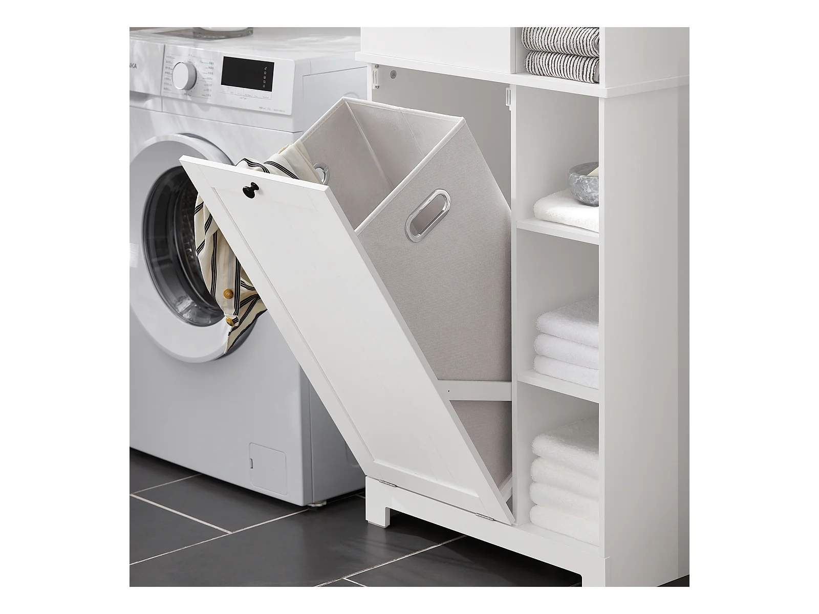 SoBuy BZR96-N Badkamerkast met 1 Wasmand, Smal Badkamerkastje, Lage Kast, Ladenkast, Halfhoge Opbergkast Opbergplank