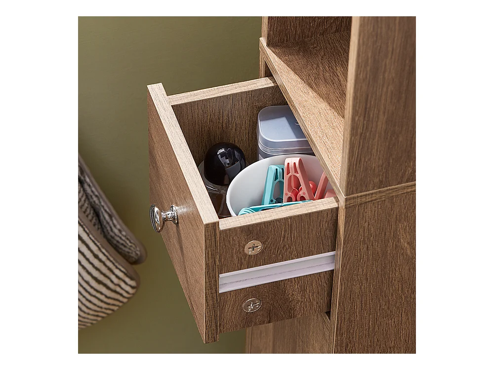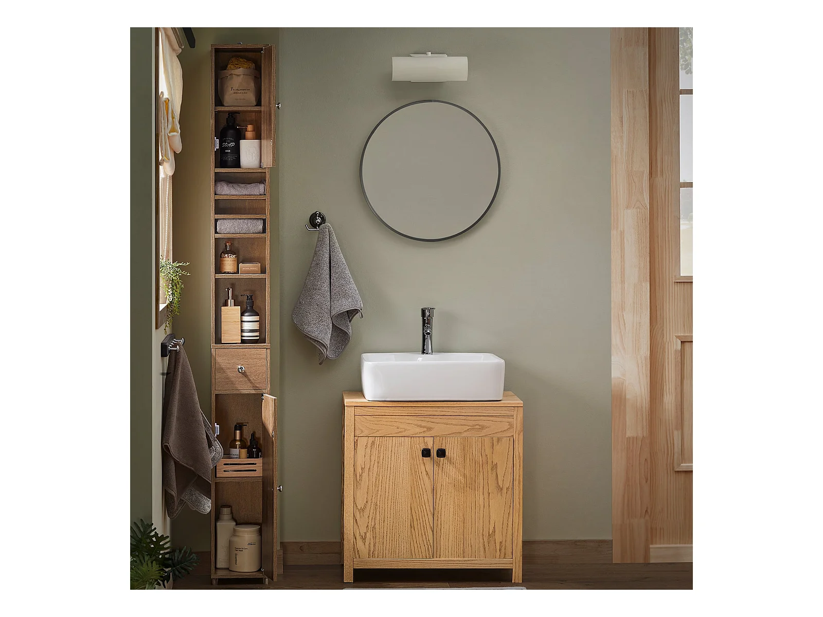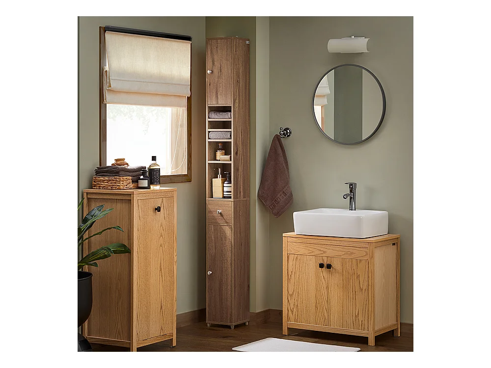 Badkamer halfkolom RIDLEY – 1 lade en 1 nis – Wit en licht eiken