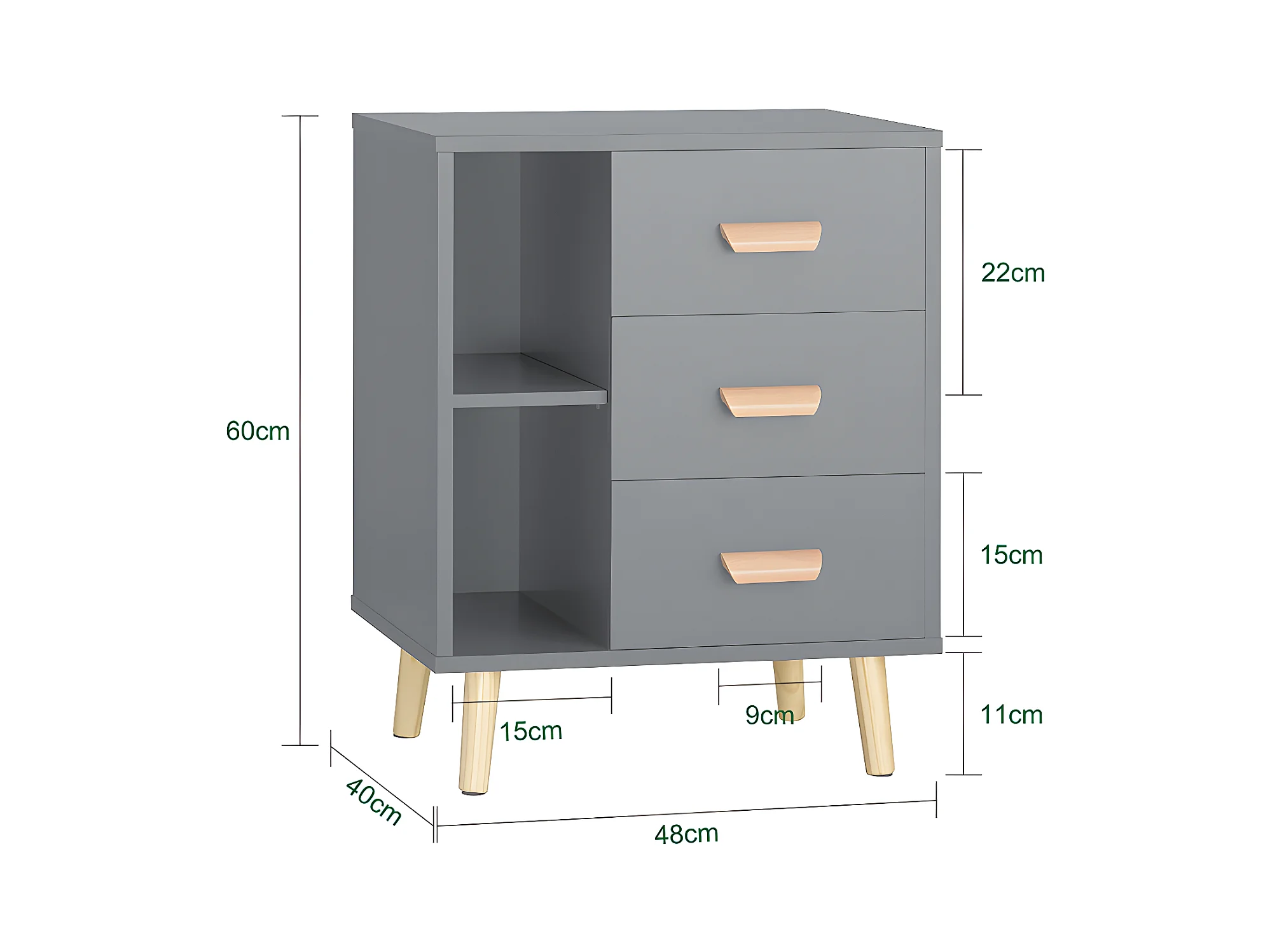 SoBuy Bijzettafel Bijzettafel Nachtkastje Nachtkastje met 3 Laden en 2 Opbergplanken - Grijs, 48x40x60 cm, FBT95-HG