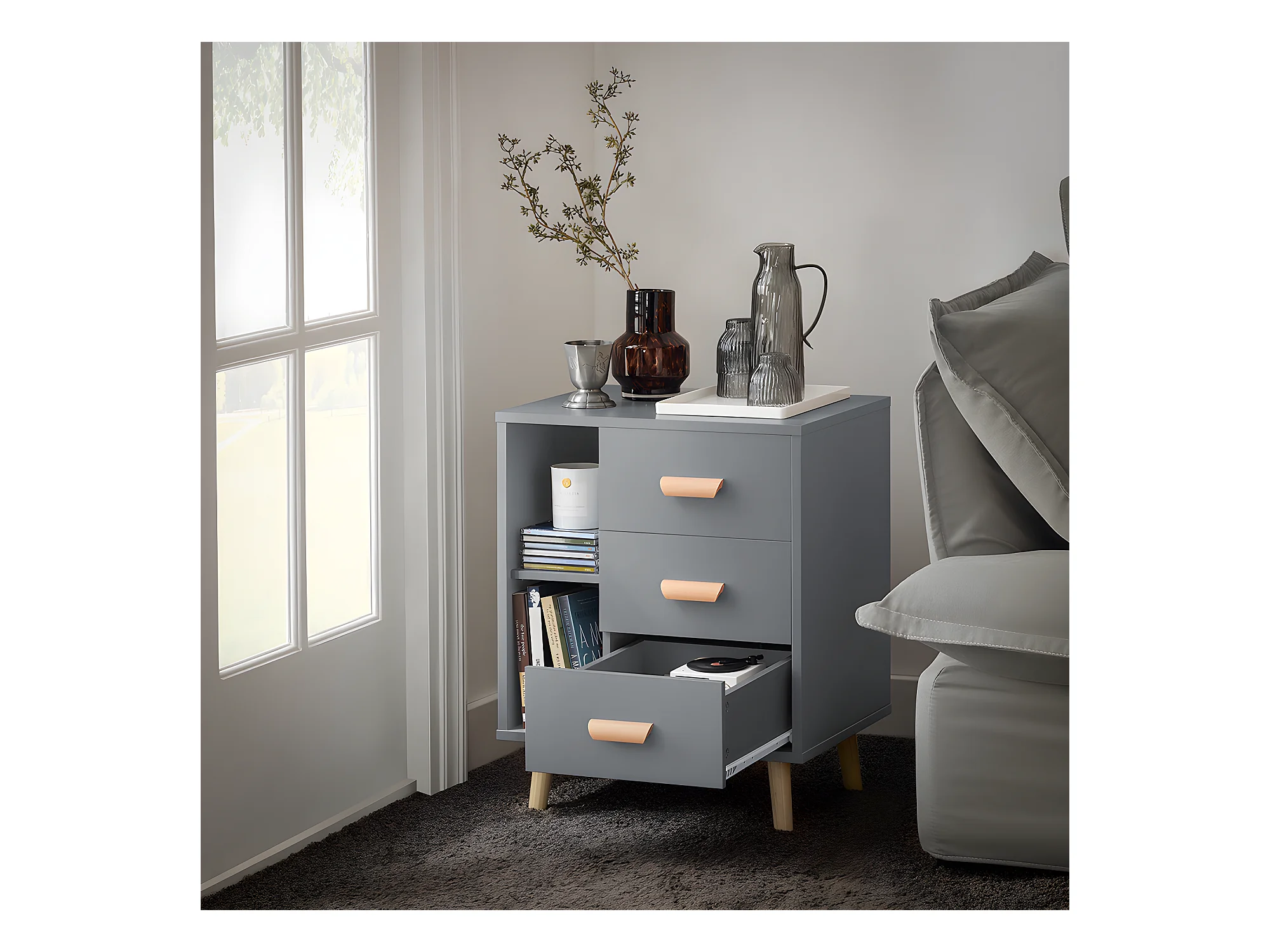 Nachtkastje - 54 cm - grijs met zwarte poten - VELLORE