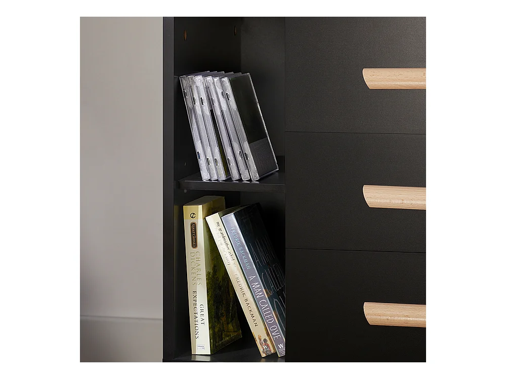 SoBuy Bijzettafel Bijzettafel Nachtkastje Nachtkastje met 3 Laden en 2 Opbergplanken - Zwart, 48x40x60 cm, FBT95-SCH