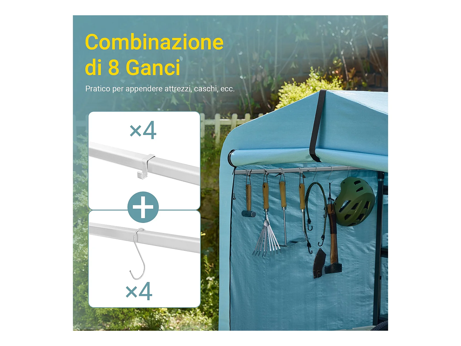 SoBuy buitentent, waterdichte motorberging met haken, garage voor fietsen en gereedschap, lichtblauw, 159x219x165 cm